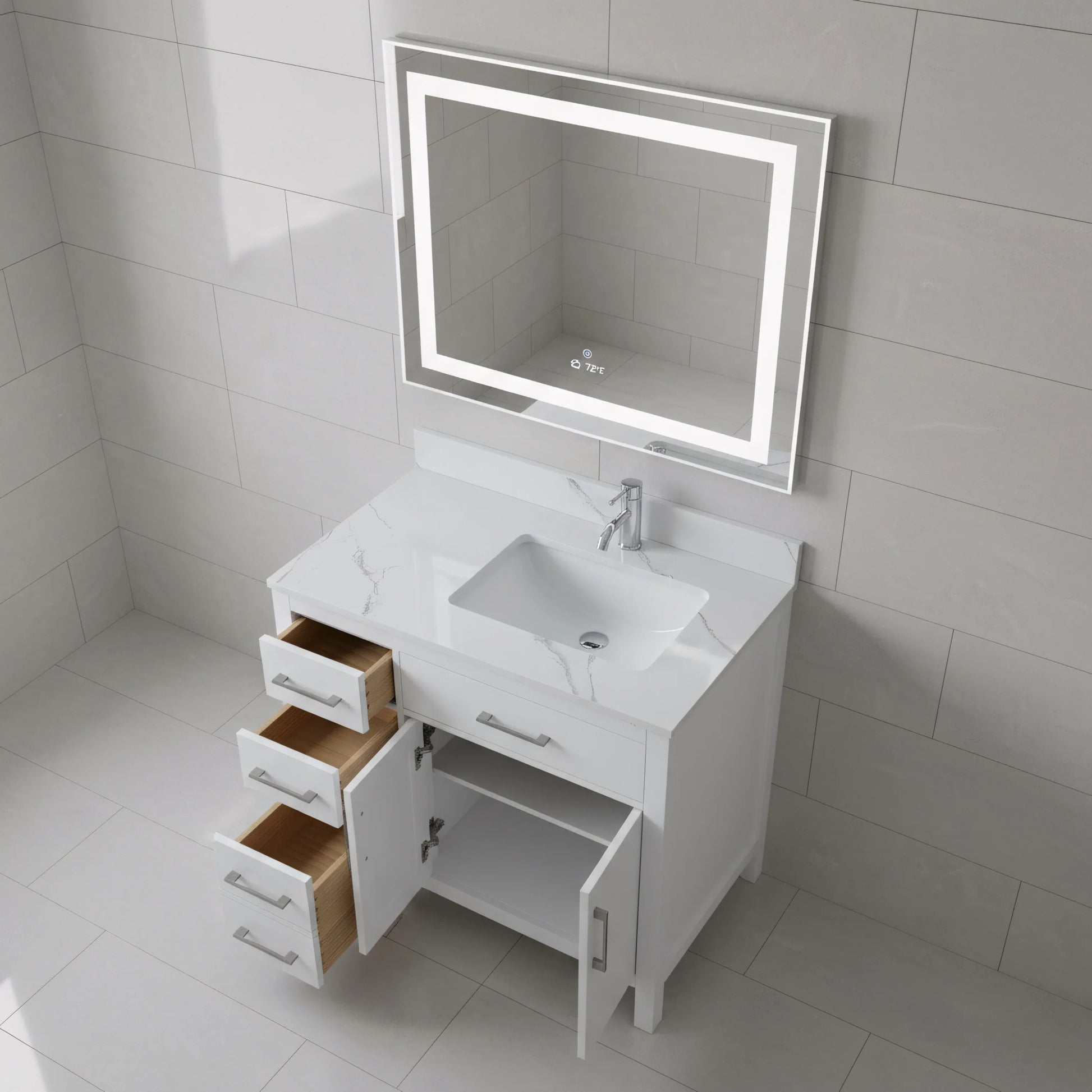 Meuble-Lavabo Autoportant 36po Blanc avec Comptoir de Marbre Ingénierie Calcutta