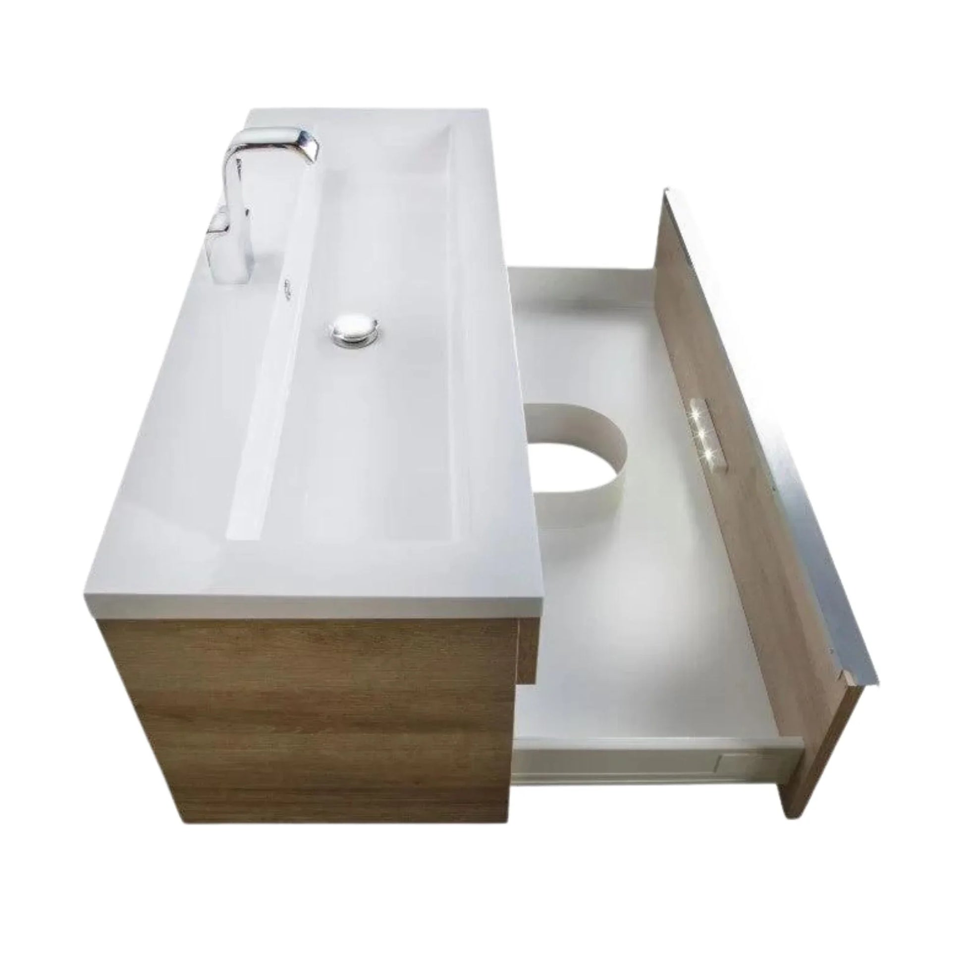 Meuble-lavabo Mural Beige Organique de 42po avec Comptoir en Acrylique Blanc : Collection Trough