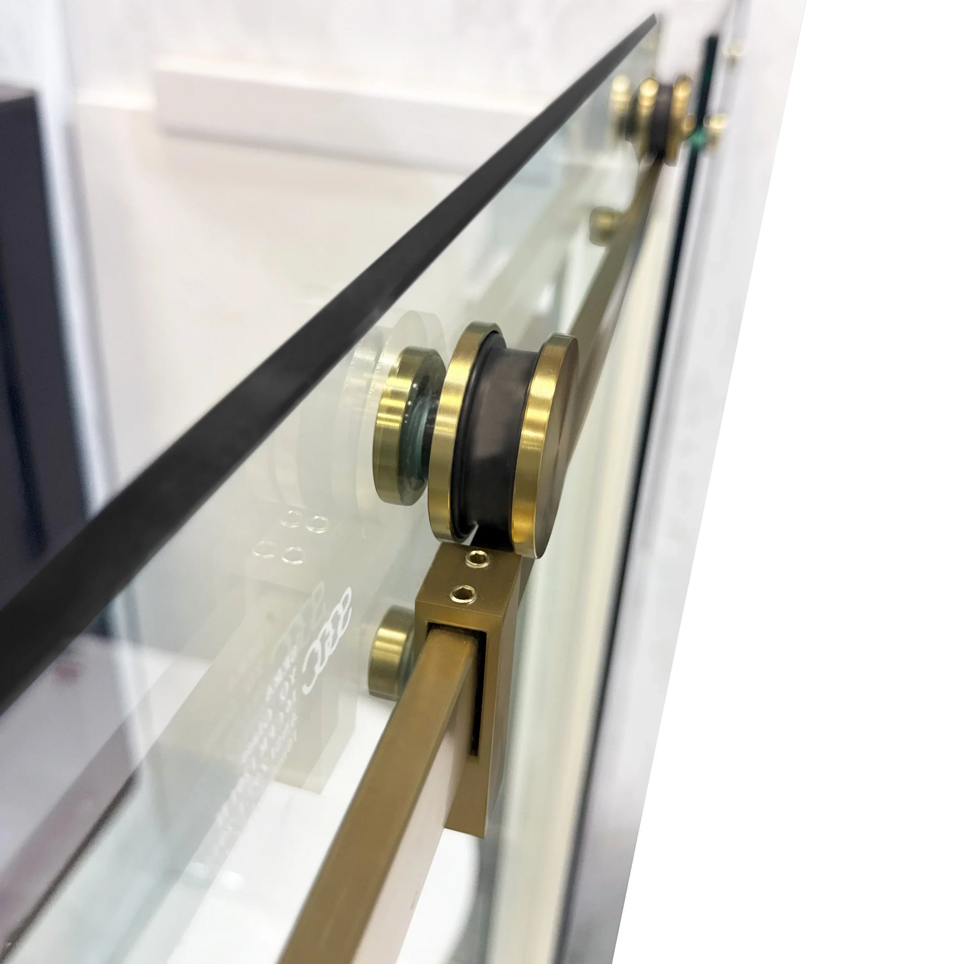 Porte de douche coulissante 60po x 36po x 75po en or brossé avec panneau latéral 36po