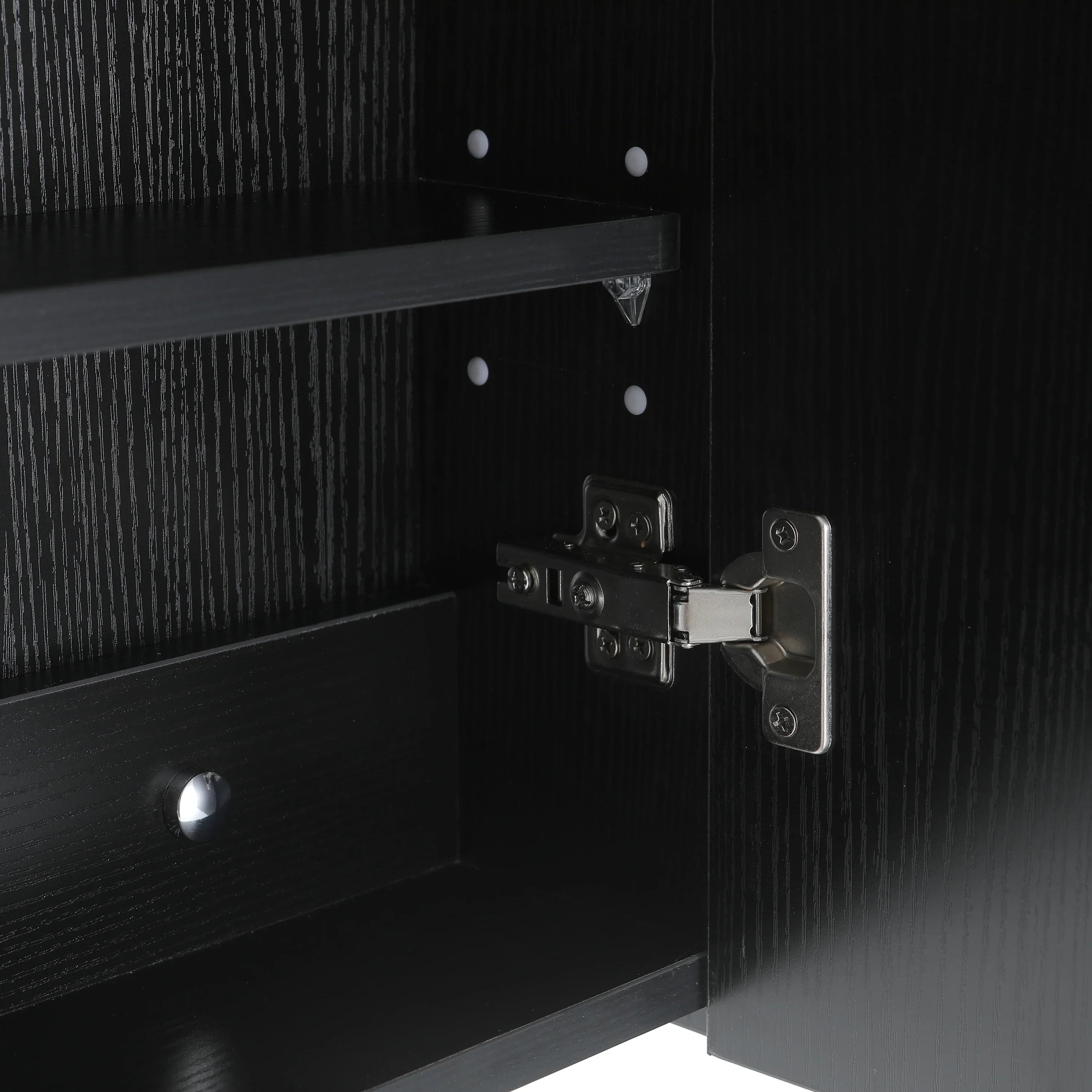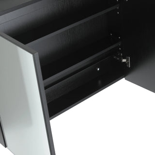 À l'intérieur, vous trouverez des étagères judicieusement agencées pour garder vos objets du quotidien organisés et à portée de main, tandis que le miroir extérieur garde votre espace ouvert et lumineux.