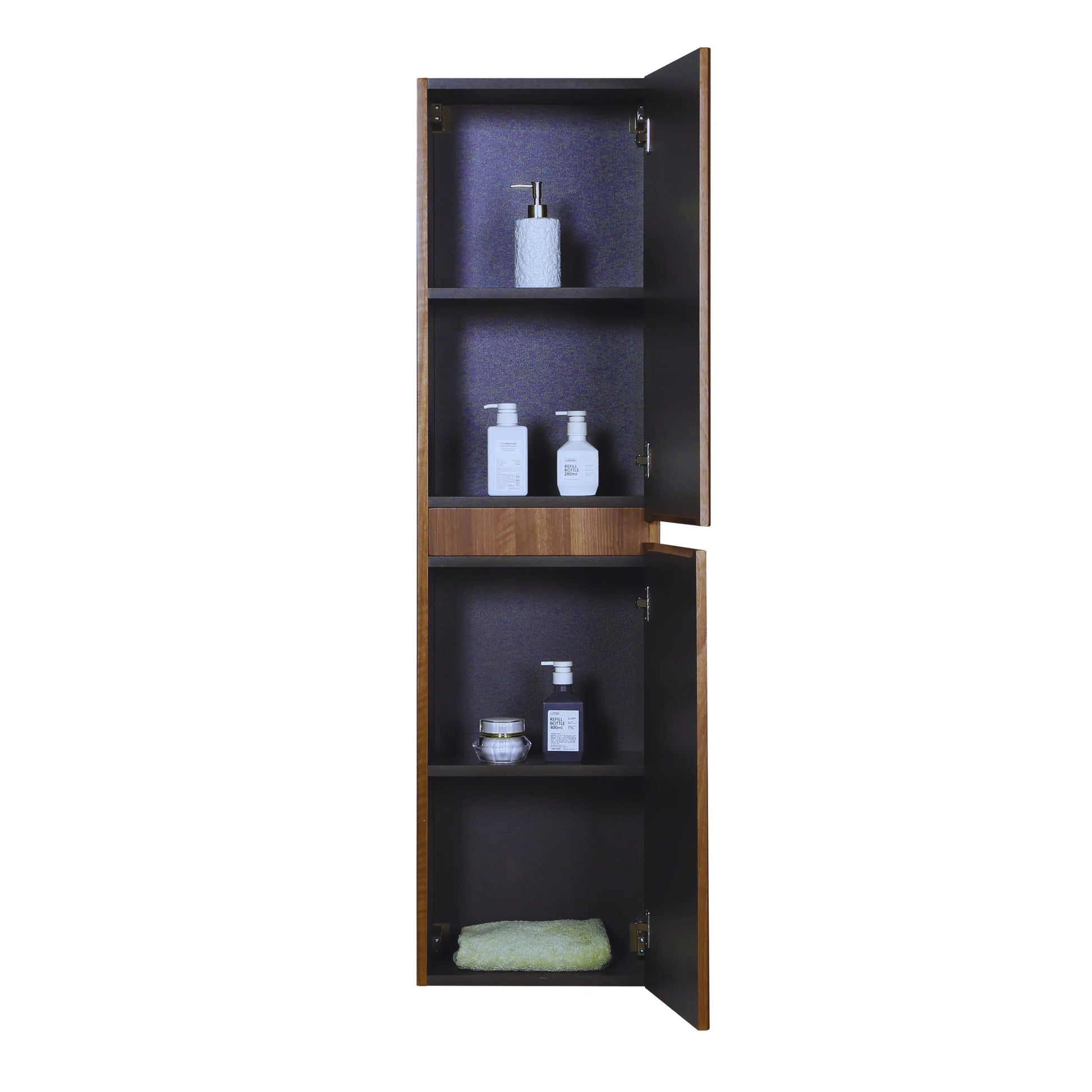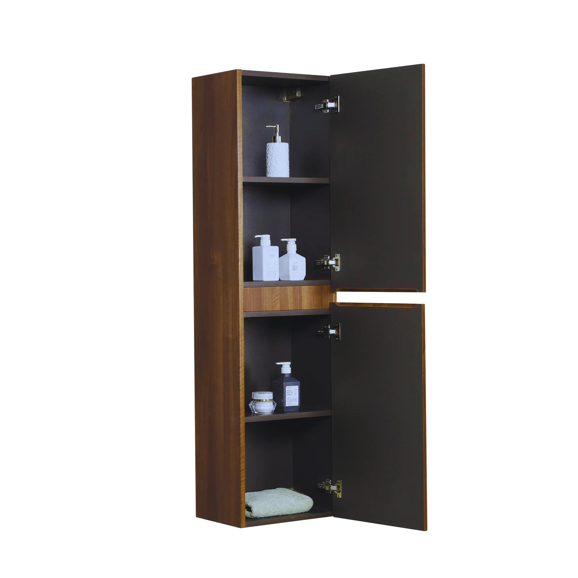 - Armoire à linge murale élégante en noyer, fabriquée en MDF résistant à l'humidité, avec finition en PVC peint et thermolaqué pour une protection supplémentaire dans les environnements humides