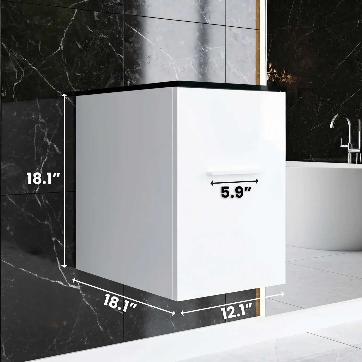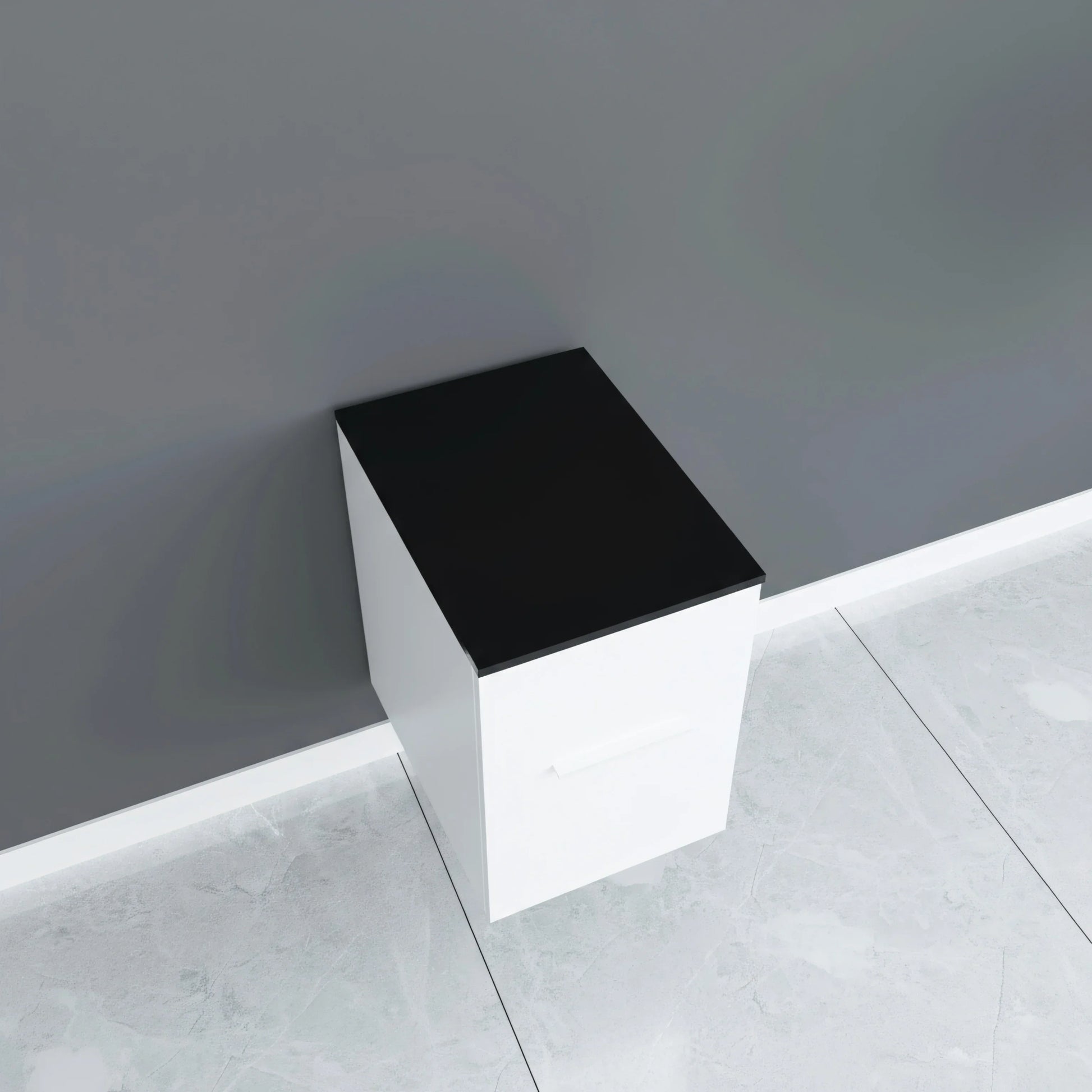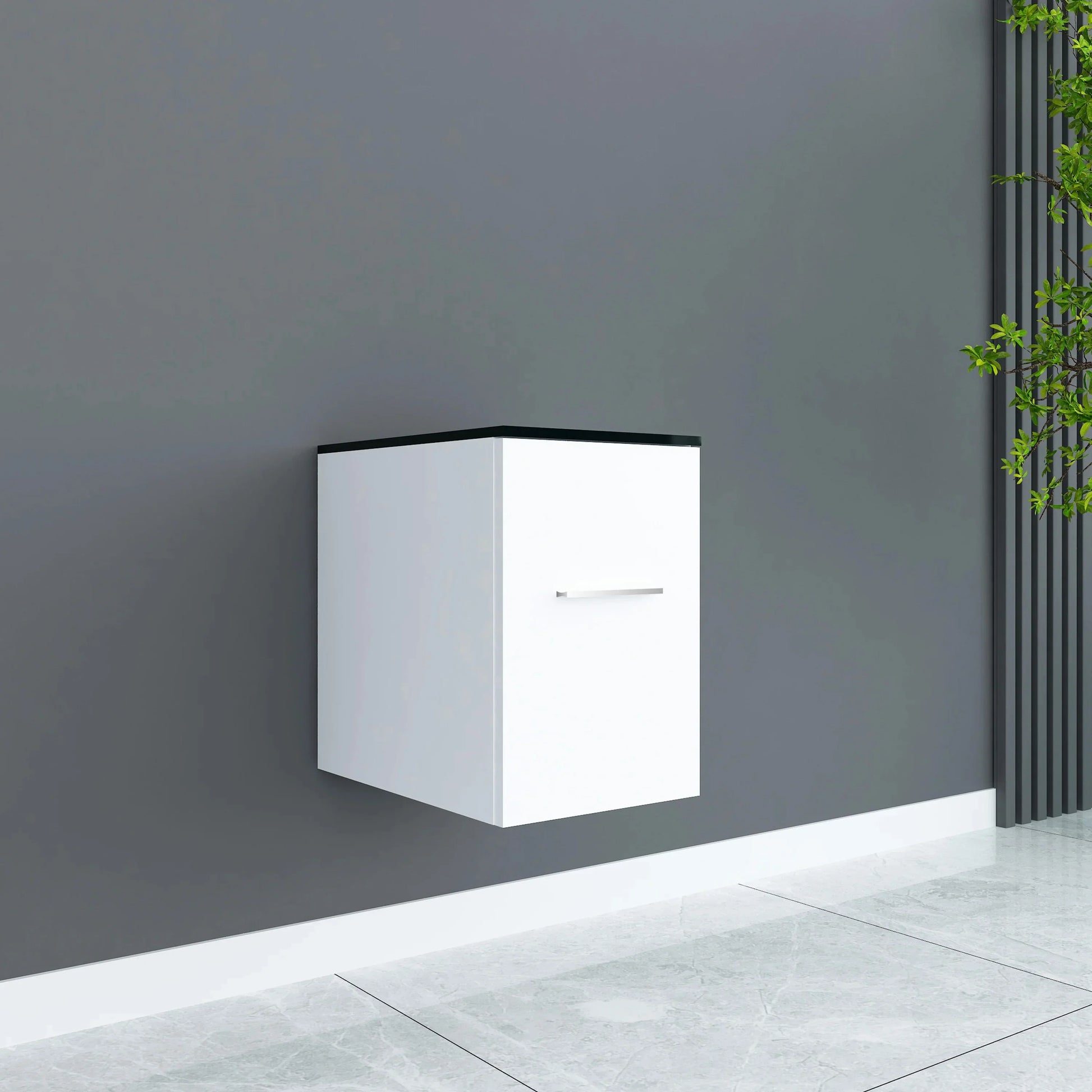Armoire Centrale Murale Blanche Mate de 12 po avec Comptoir en Verre Trempé Noir