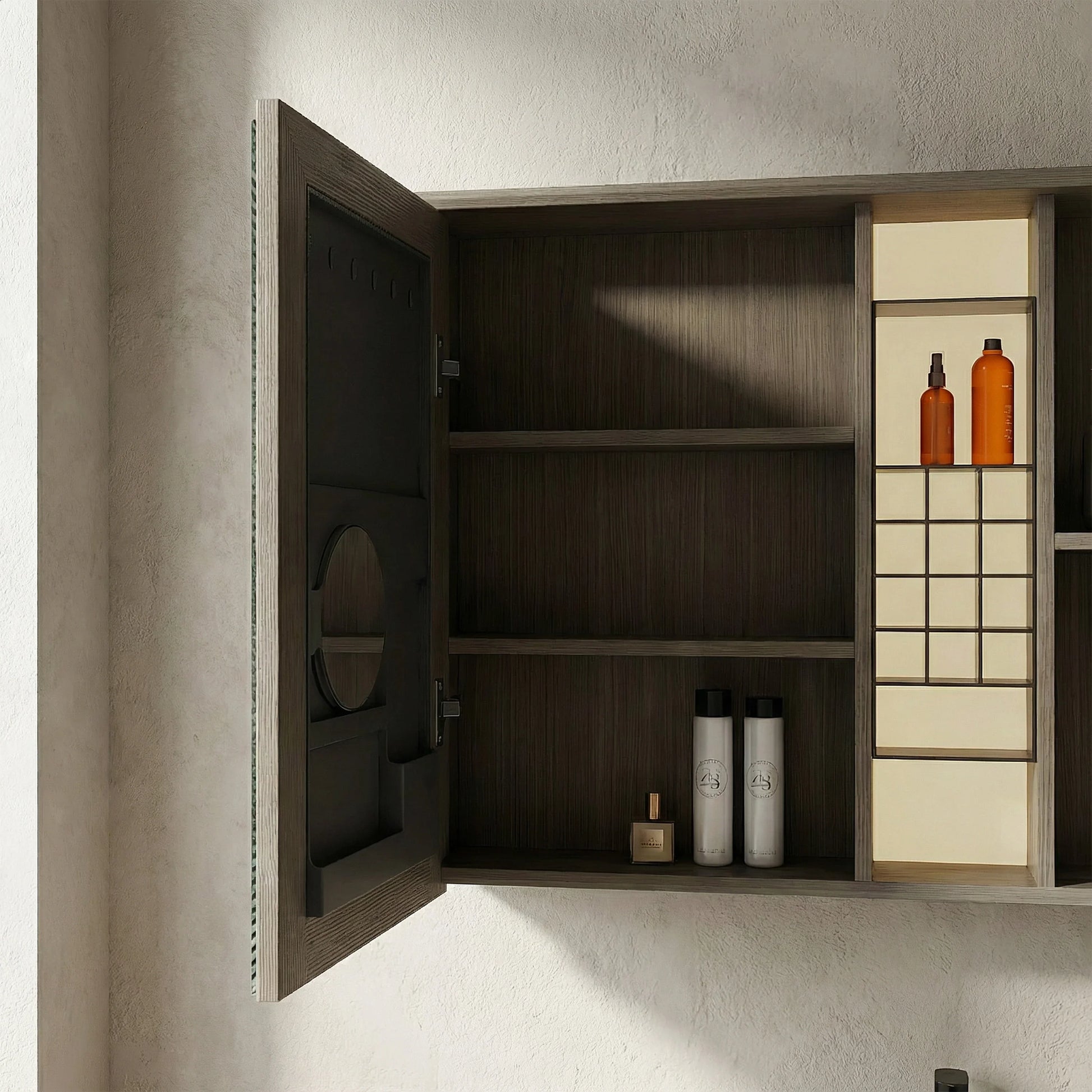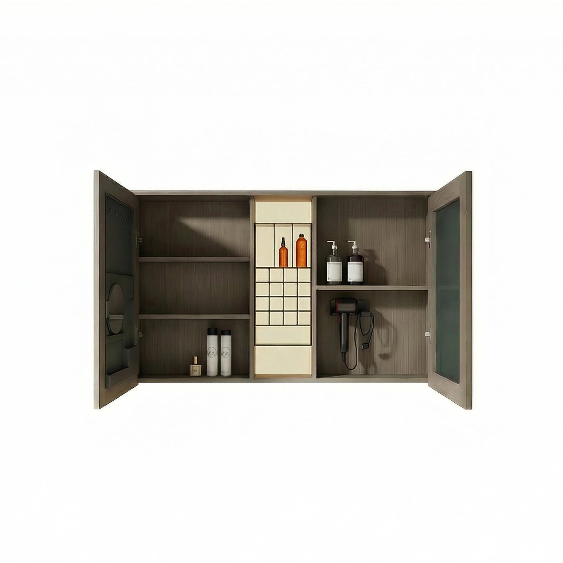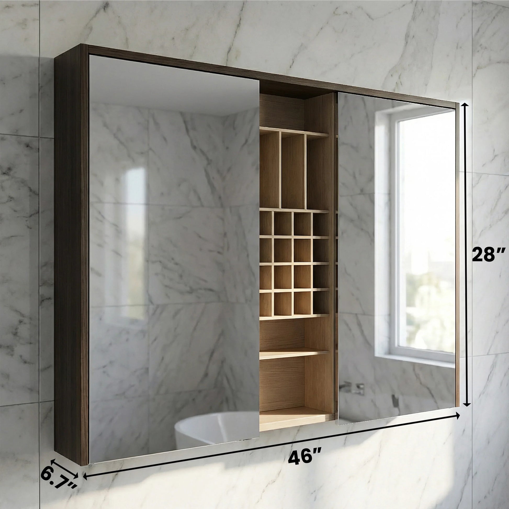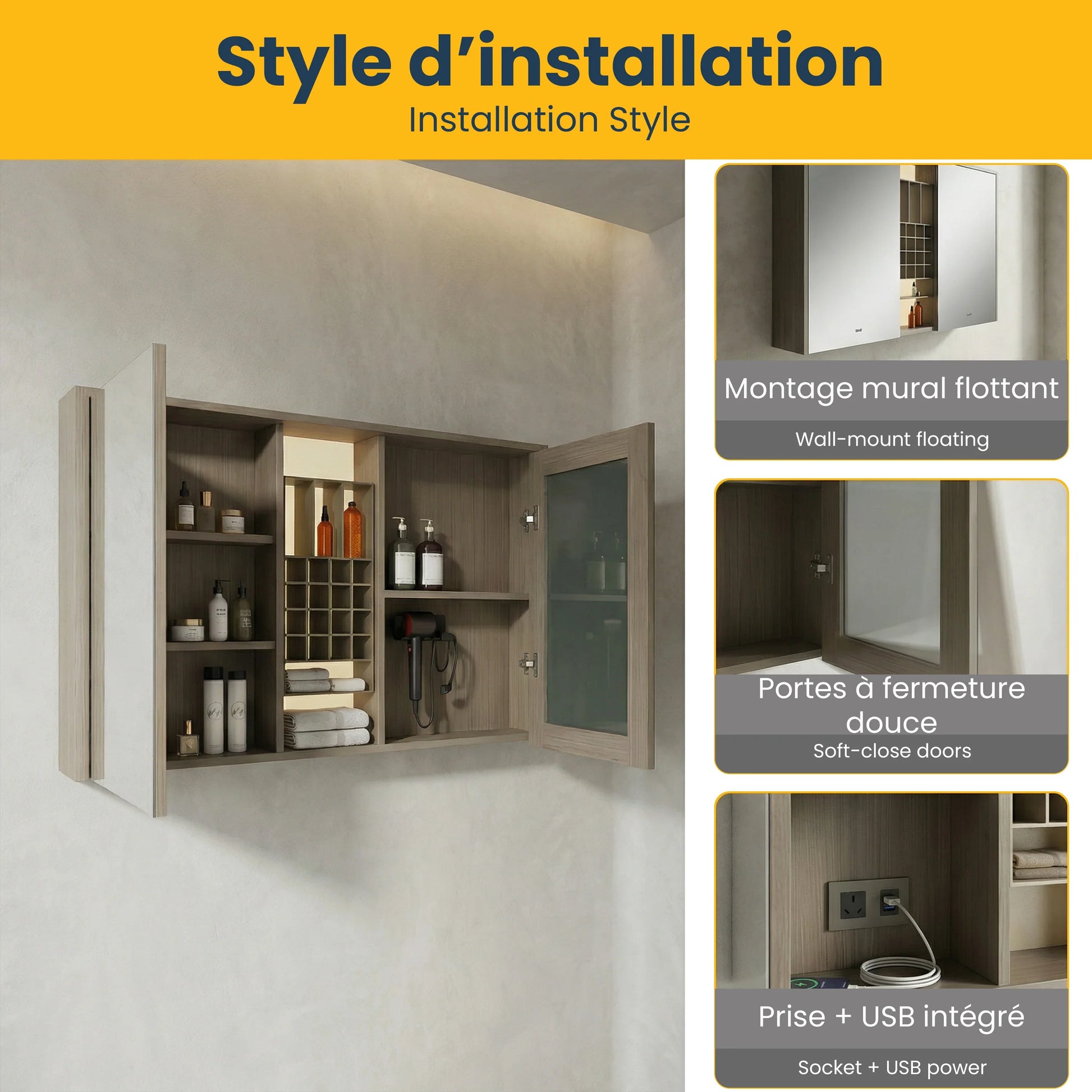 Fabriquée en contreplaqué de haute qualité avec une finition taupe raffinée, cette armoire à pharmacie mesure 48po (L) x 28po (H) x 6,7po (P), offrant un espace de rangement généreux sans encombrer votre pièce. L'éclairage DEL intégré avec interrupteur tactile procure une illumination douce et flatteuse, idéale pour vos rituels quotidiens.