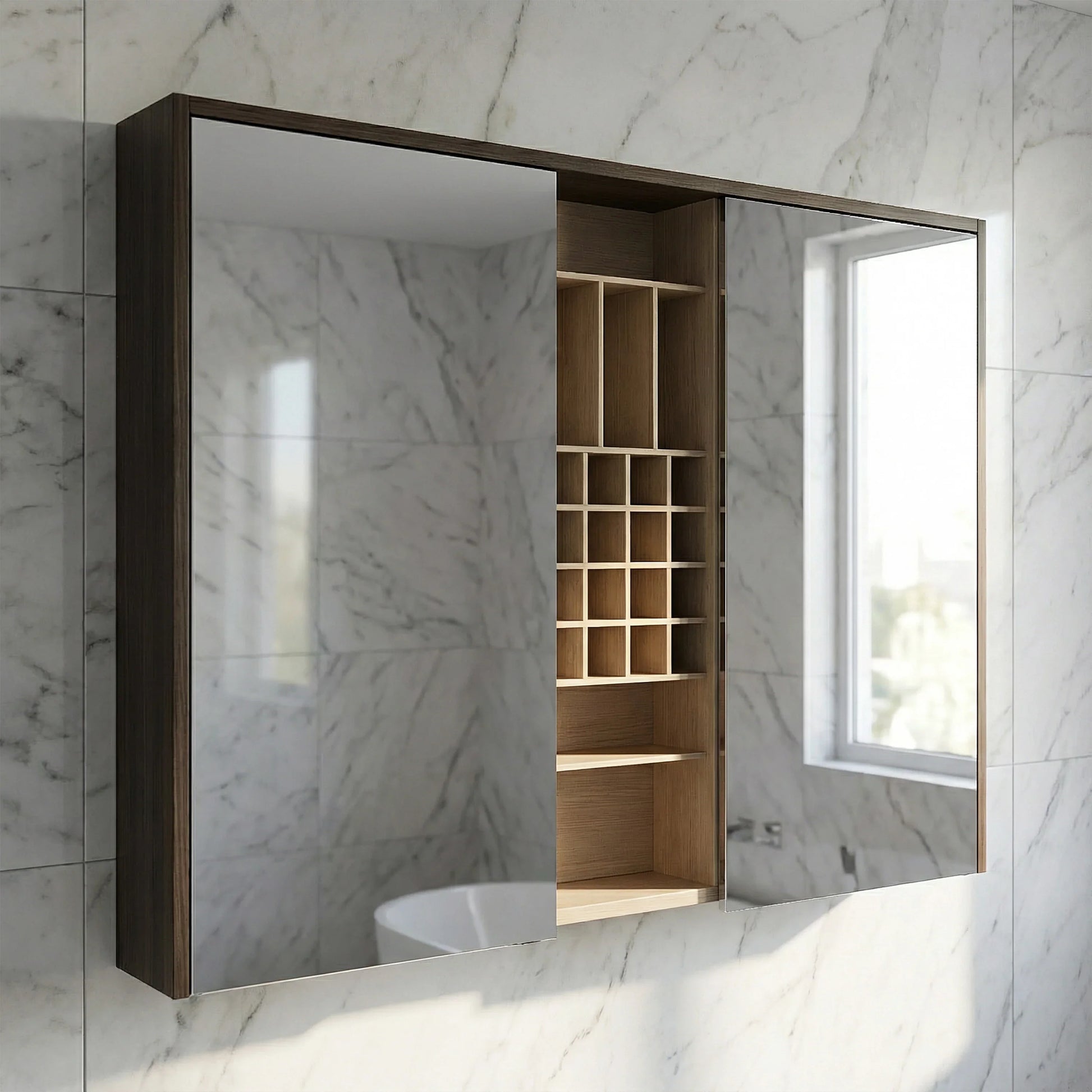Complétez votre rénovation en jumelant cette armoire avec un meuble lavabo assorti de notre vaste collection. Visitez l'une de nos 4 salles de montre à Montréal pour voir cette armoire à pharmacie DEL en personne. Garantie 1 an incluse.