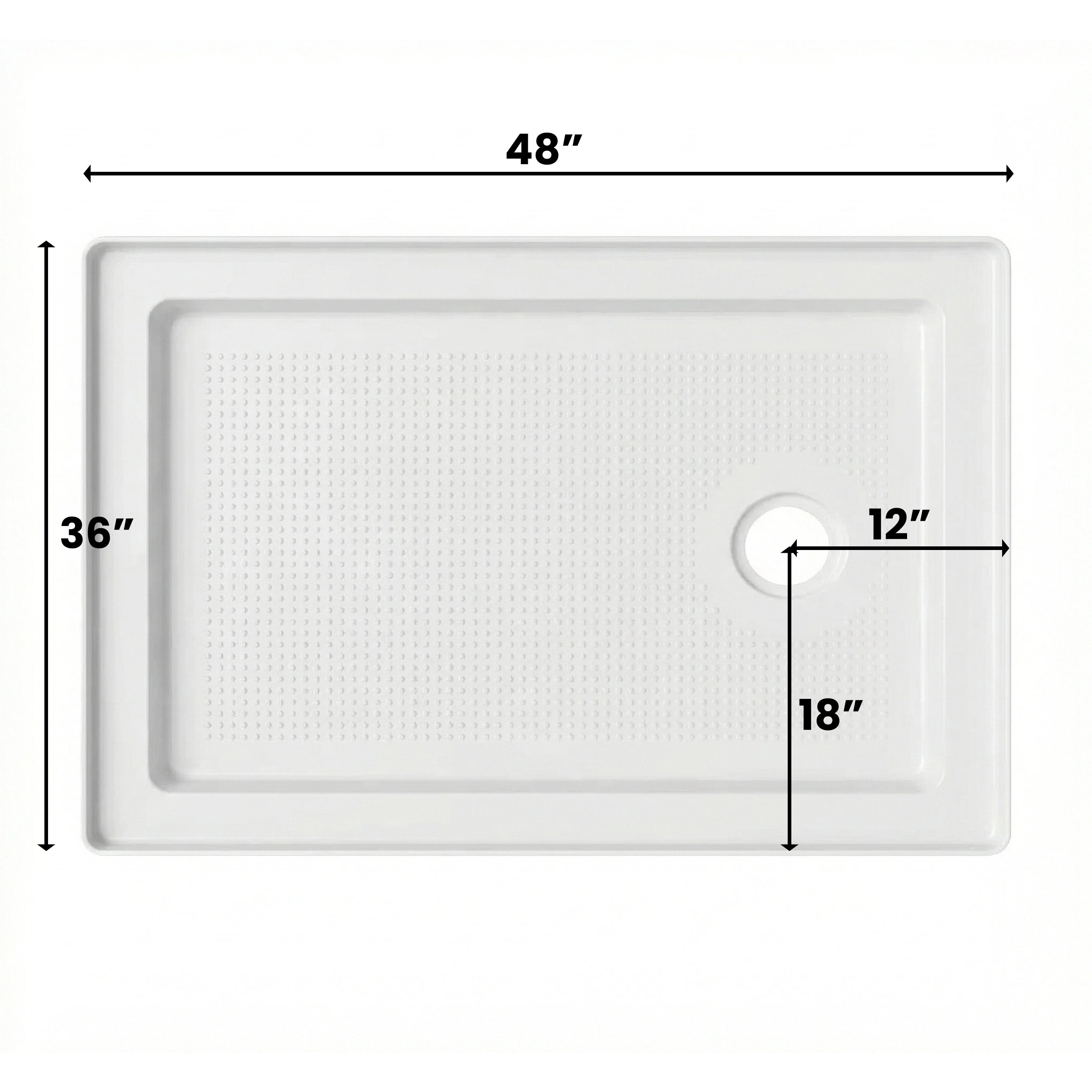 Base de Douche Acrylique Blanc 48 po x 36 po - Installation 2 Murs - Drain à Droite