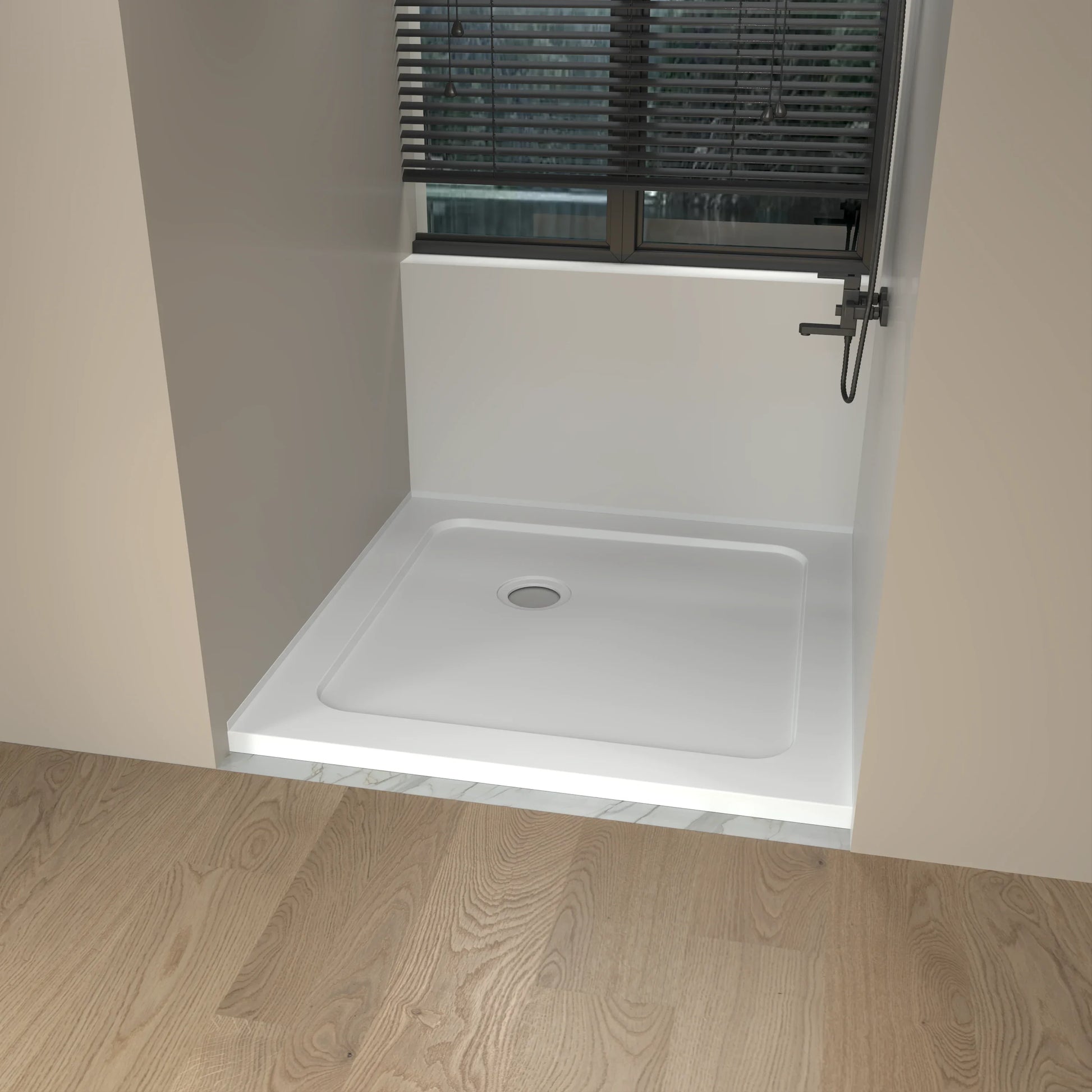 Base de douche acrylique blanc brillant 36po x 36po avec drain de coin