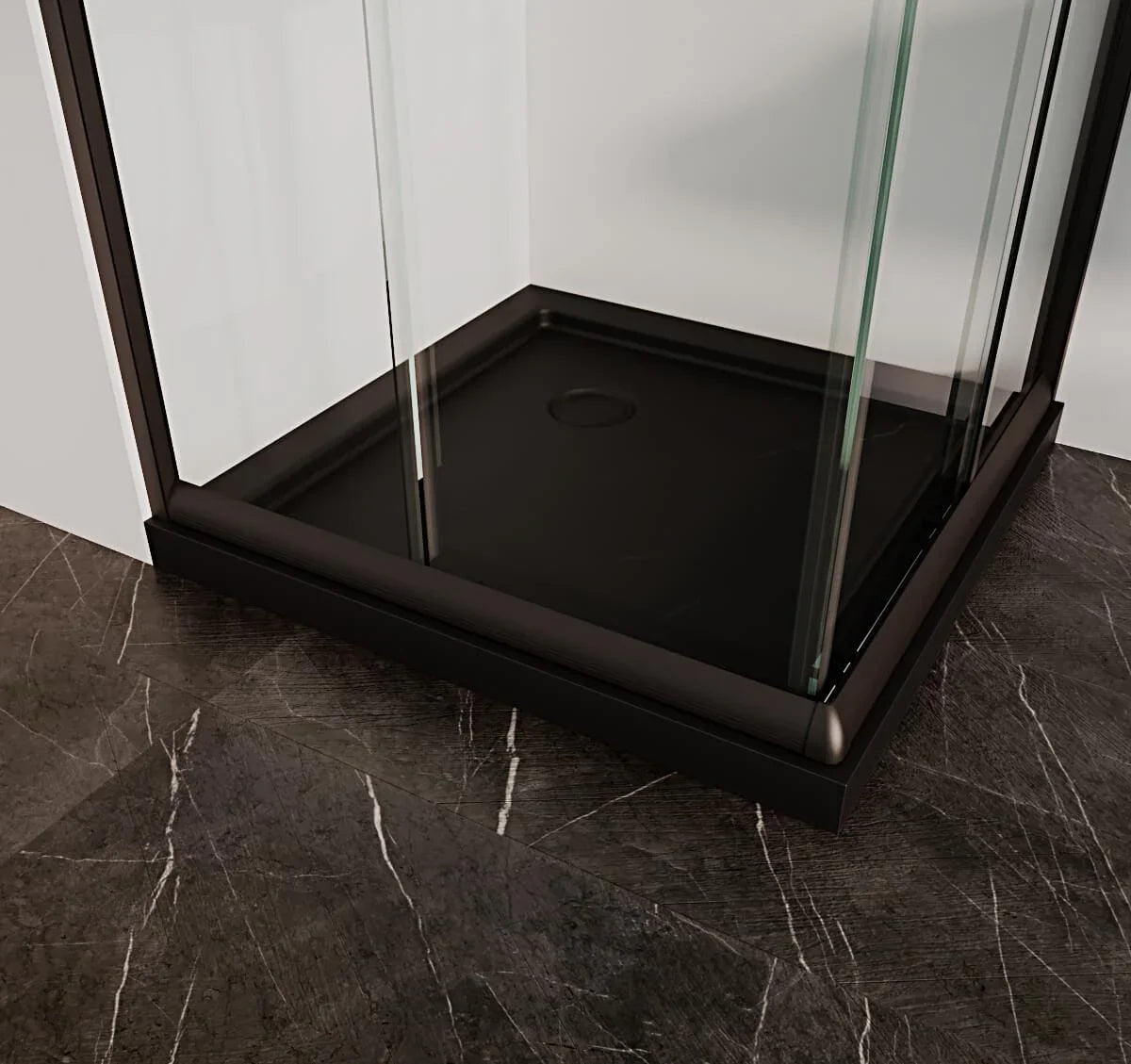 Base de douche noire 36po x 36po en acrylique avec drain de coin