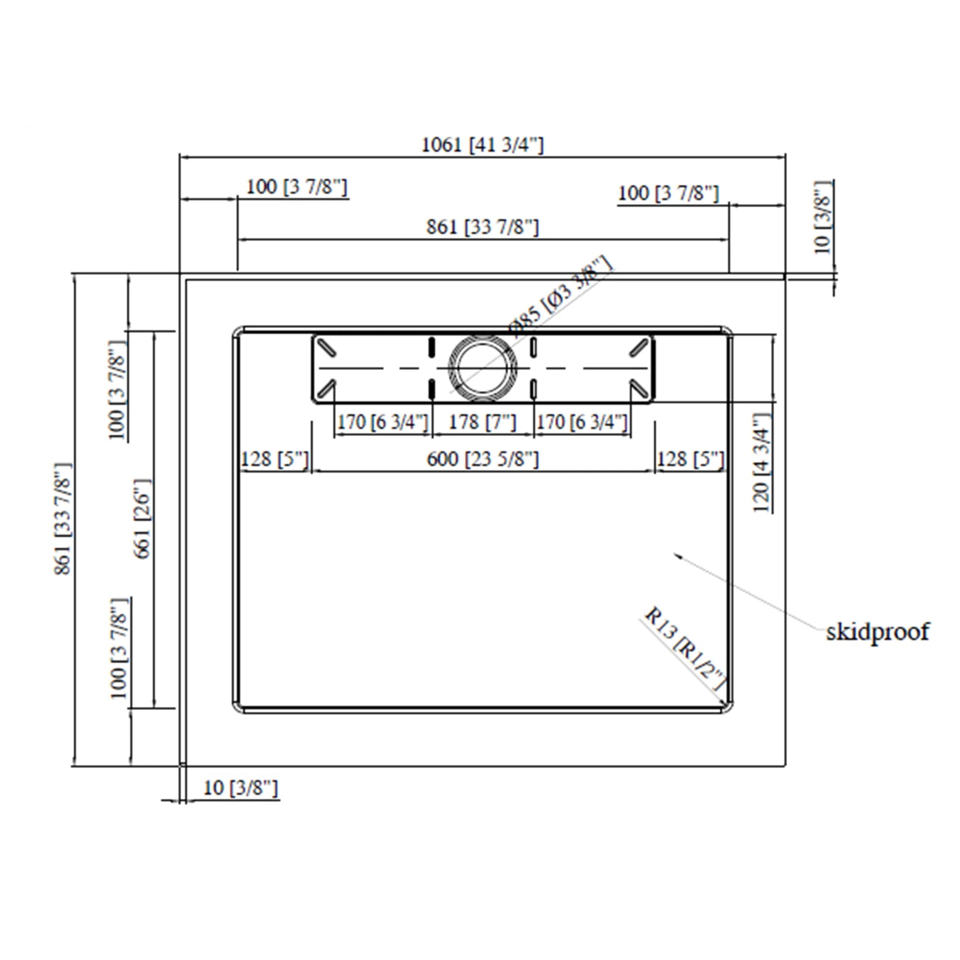 Base de Douche Acrylique Blanc 42po x 34po avec Drain Linéaire à Gauche