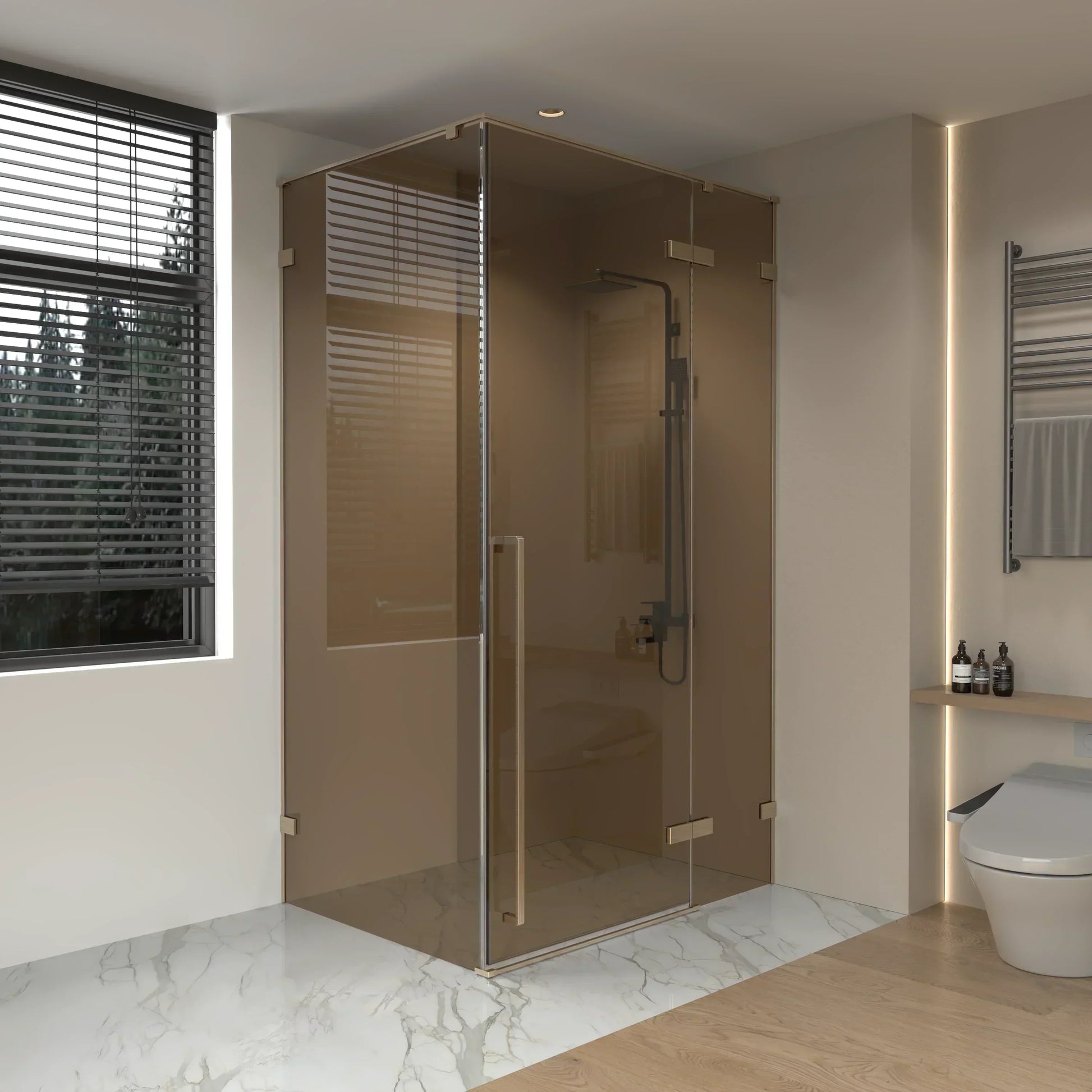 Porte de Douche Pivotante Or Brossé 60po x 79po avec Verre Brun et Panneau Latéral 36po