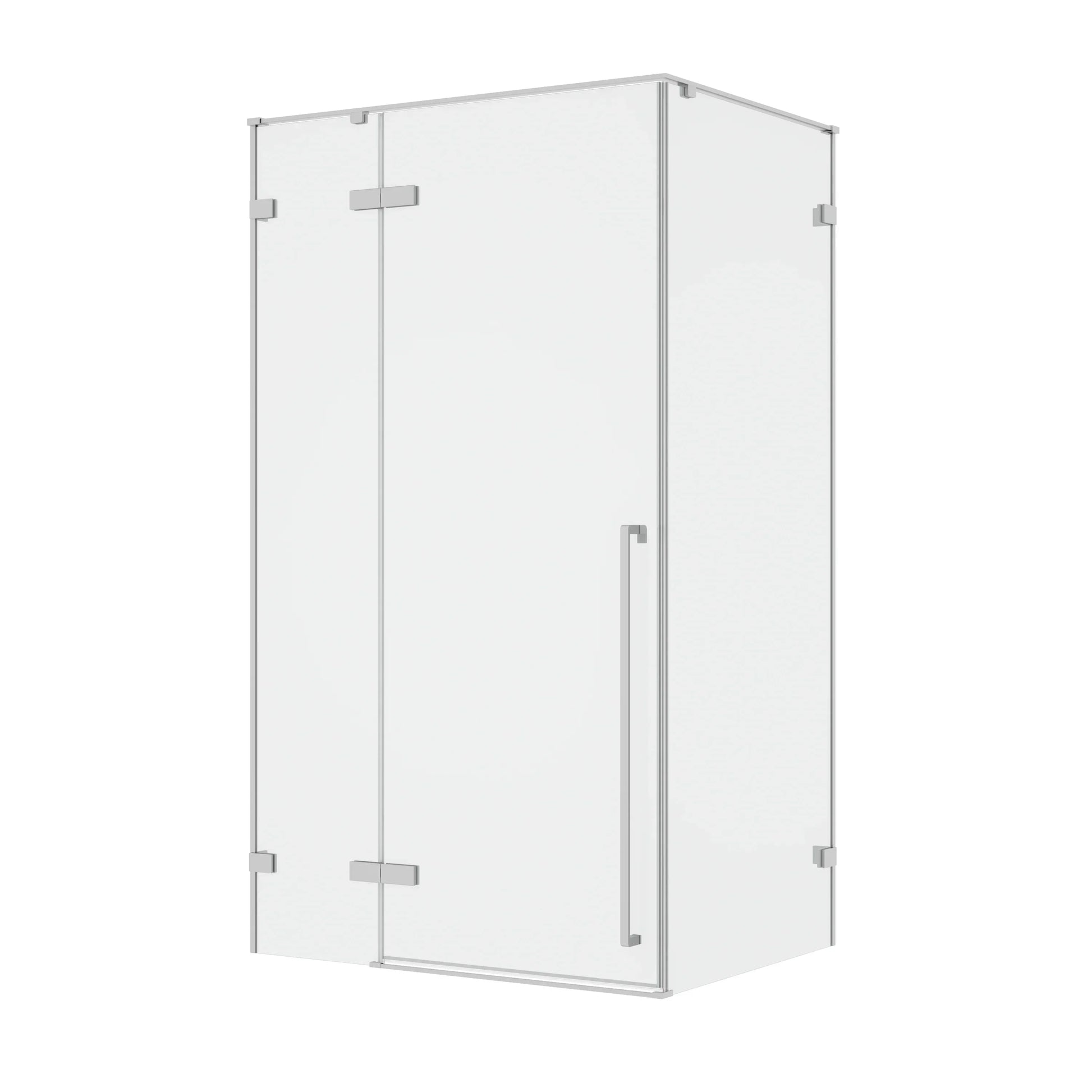 Porte de douche pivotante chromée 60po x 79po avec panneau latéral 36po - Verre clair