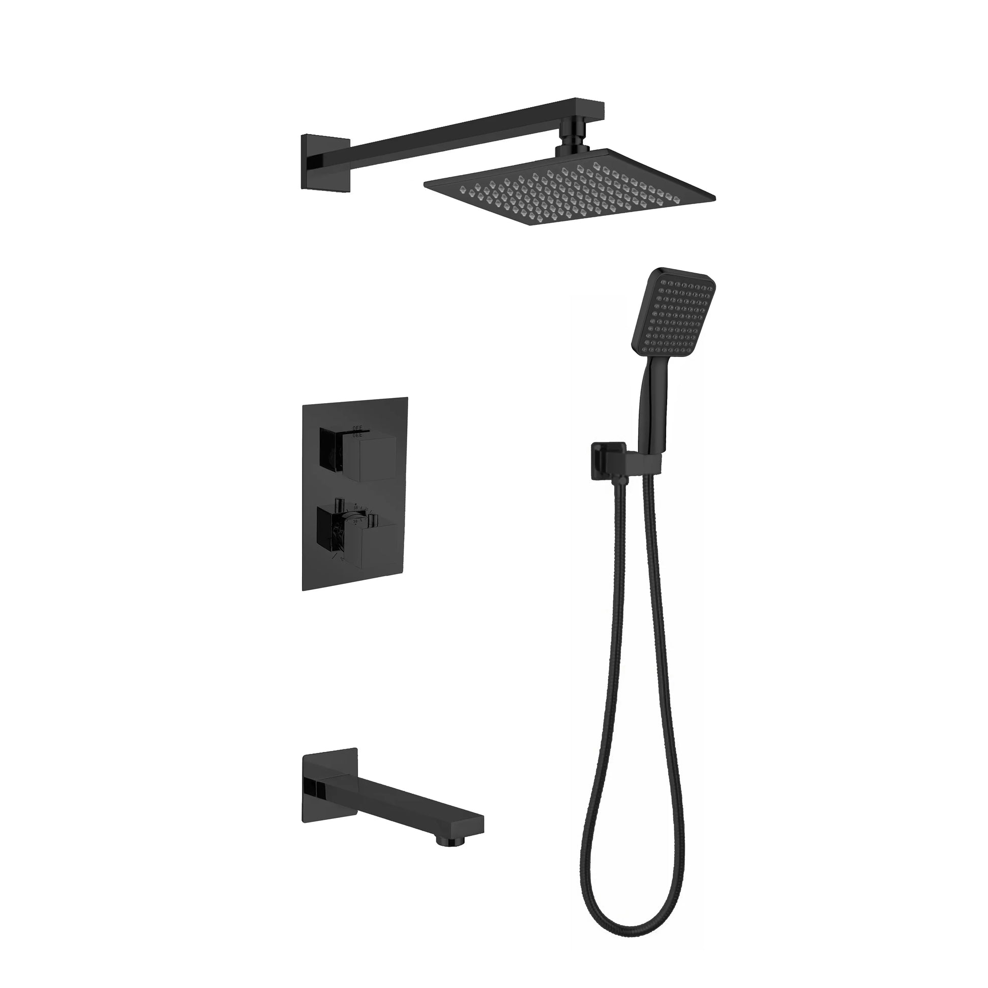 Ensemble de douche de salle de bain, Bali, noir mat, thermostatique 3 fonctions