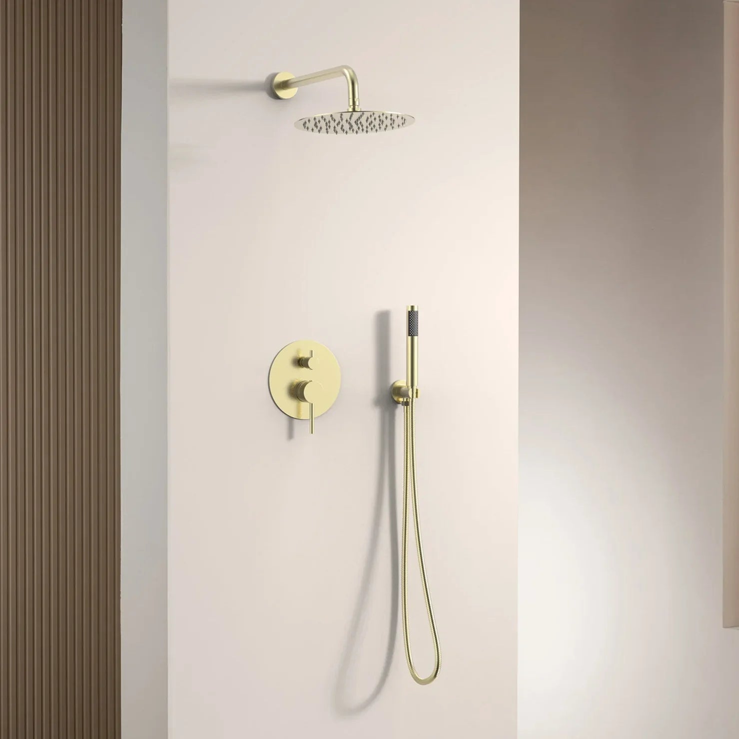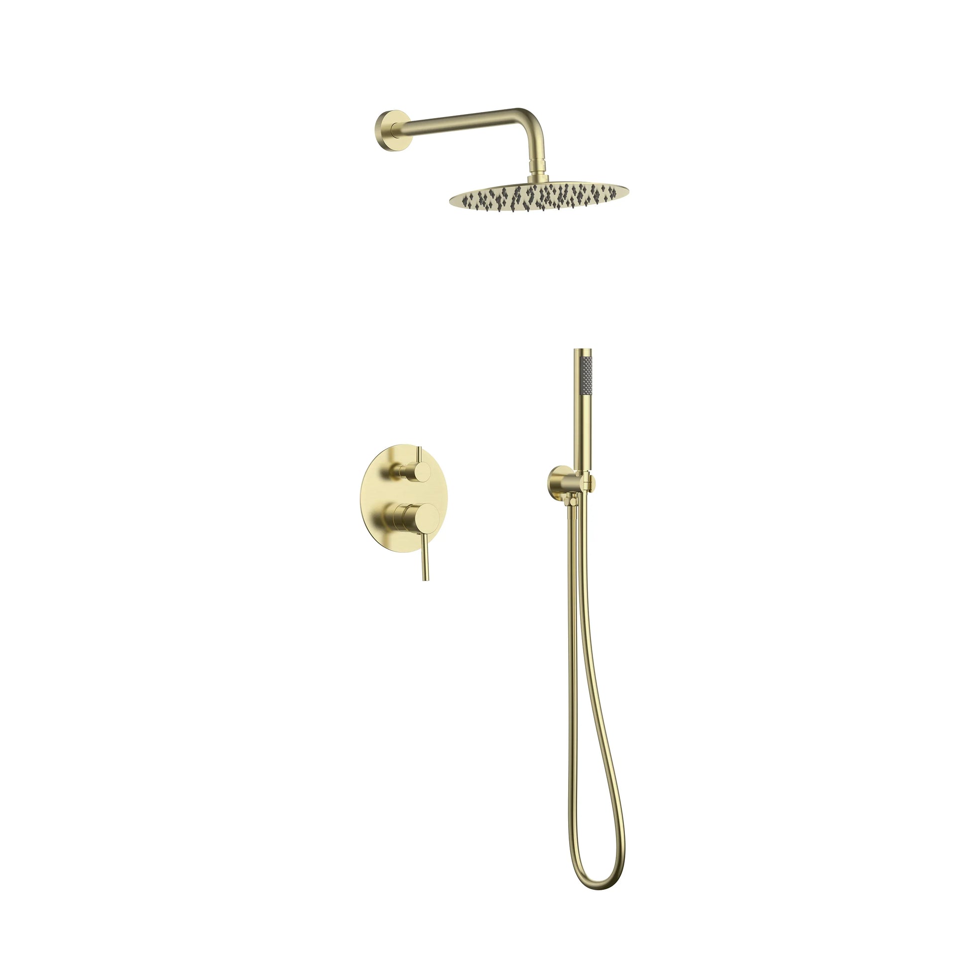 Ensemble de douche finition or brossé avec pommeau rond et poignée - Équilibrage de pression - Collection Verona
