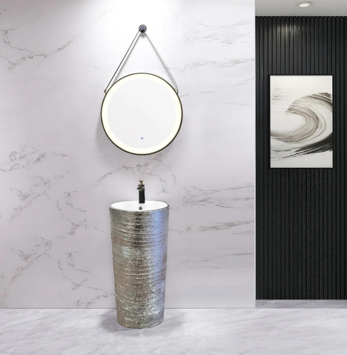 Lavabo sur Colonne 16po en Céramique Argenté Texturé - Vanité Autoportante