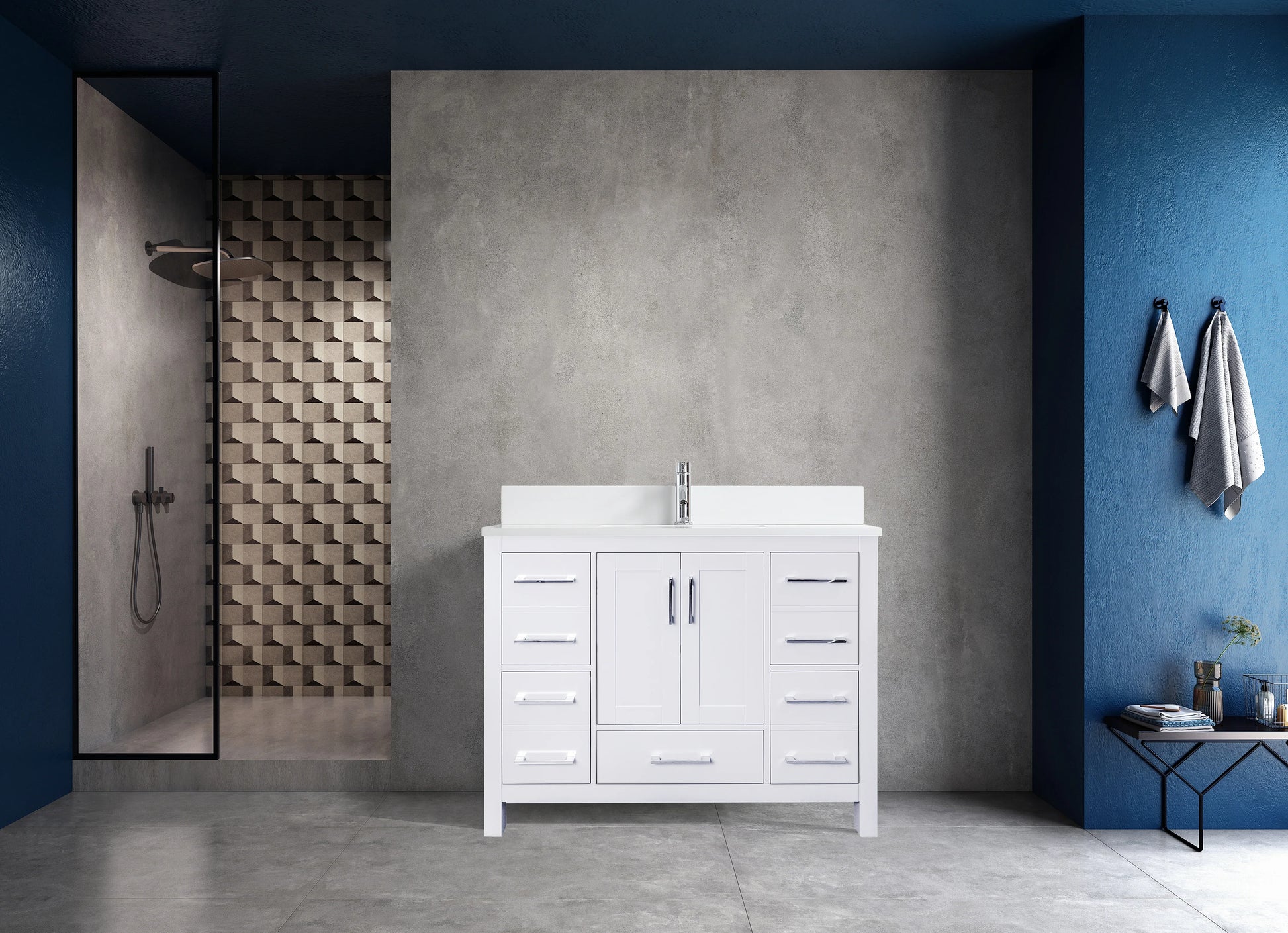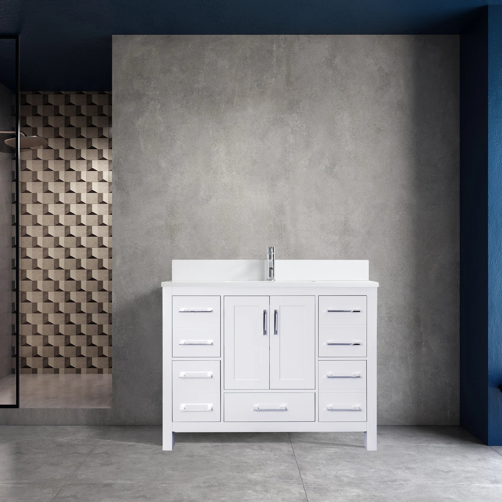 Meuble-lavabo Autoportant 42 po Blanc avec Comptoir de Marbre Ingénierie Calcutta
