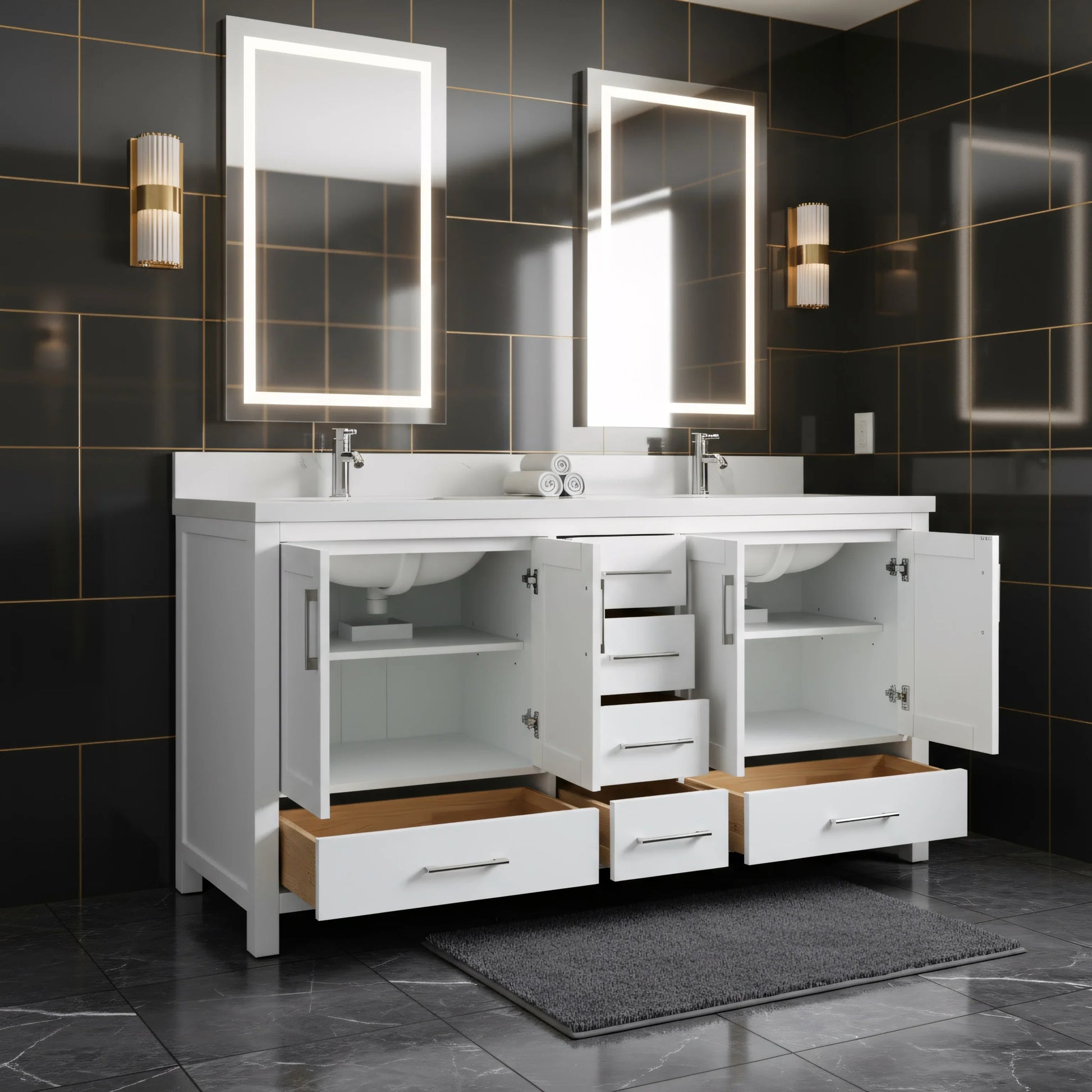 Meuble-Lavabo Autoportant 72po Blanc avec Comptoir de Marbre Ingénierie Calcutta