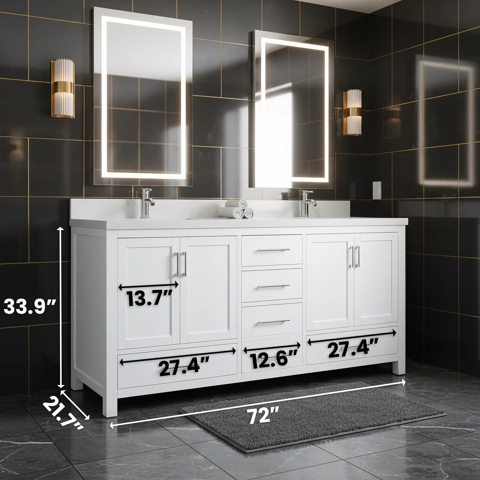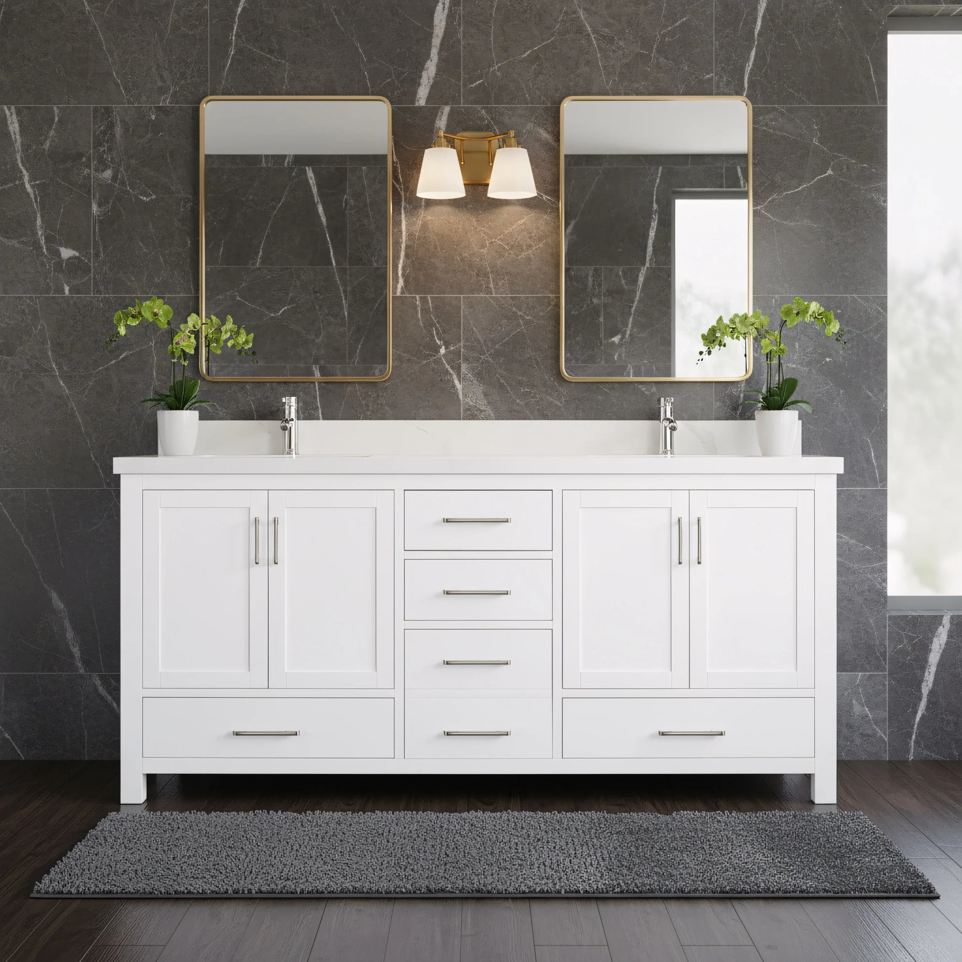 Le meuble-lavabo autoportant Carmela de 72 pouces allie élégance classique et fonctionnalité moderne, un atout intemporel pour toute salle de bains. Son cadre en bois massif, son système de fermeture amortie et son plateau en marbre de Calcutta allient beauté et durabilité.