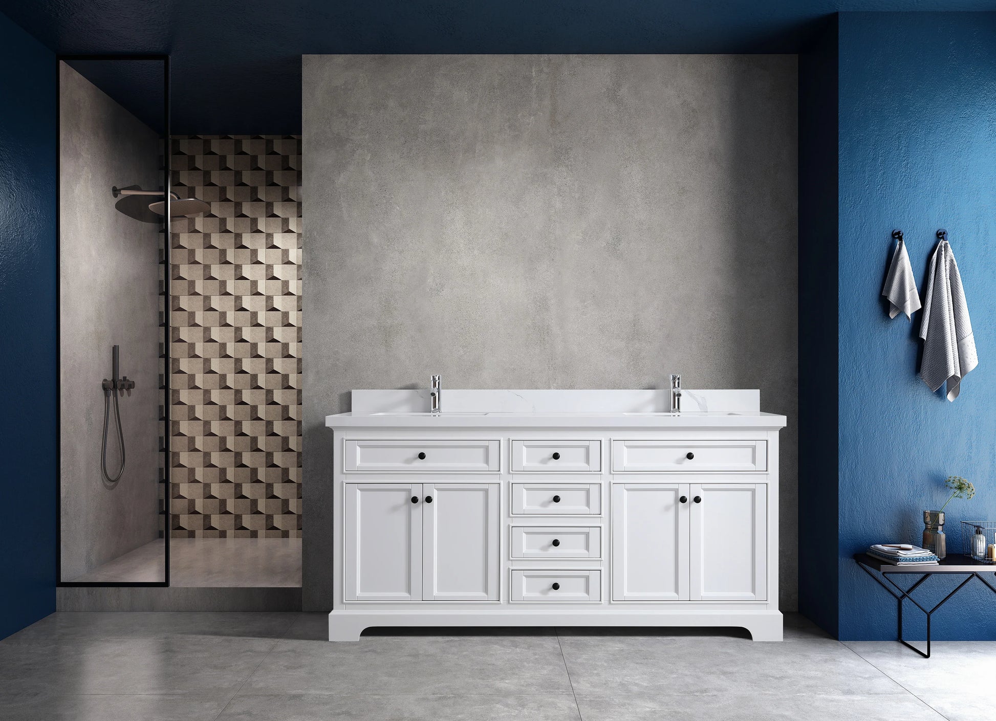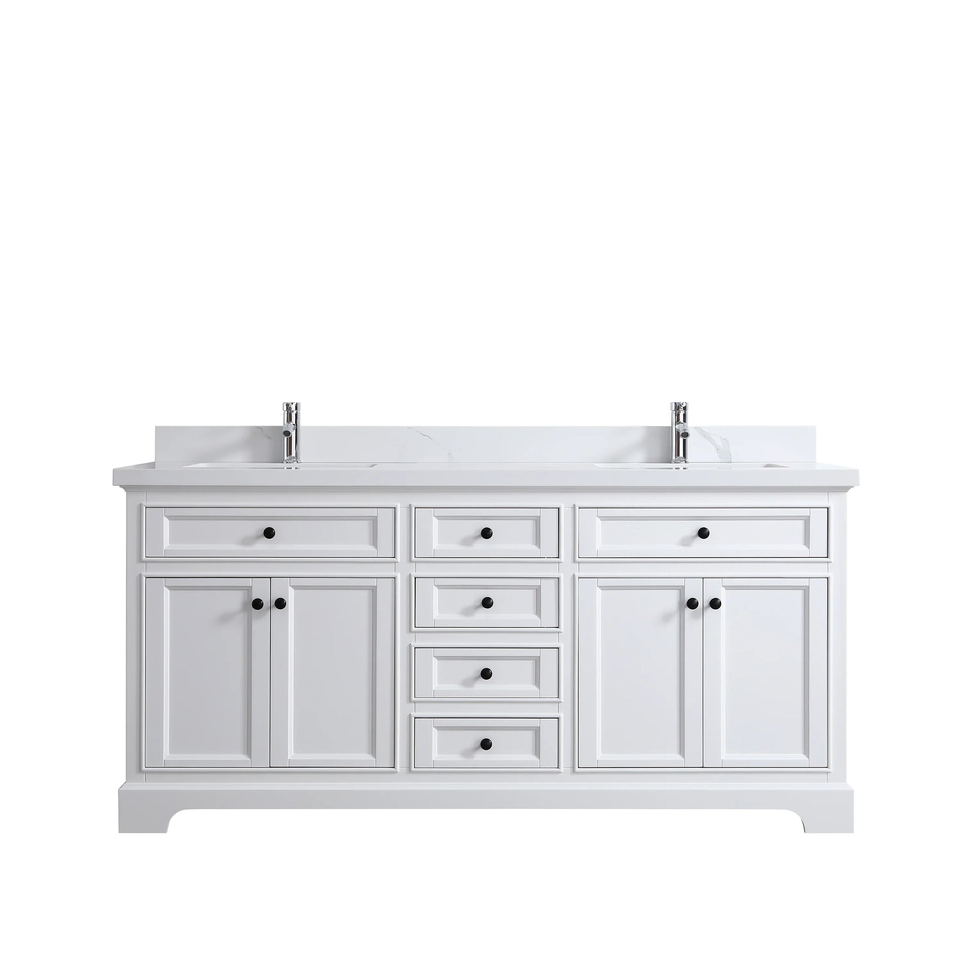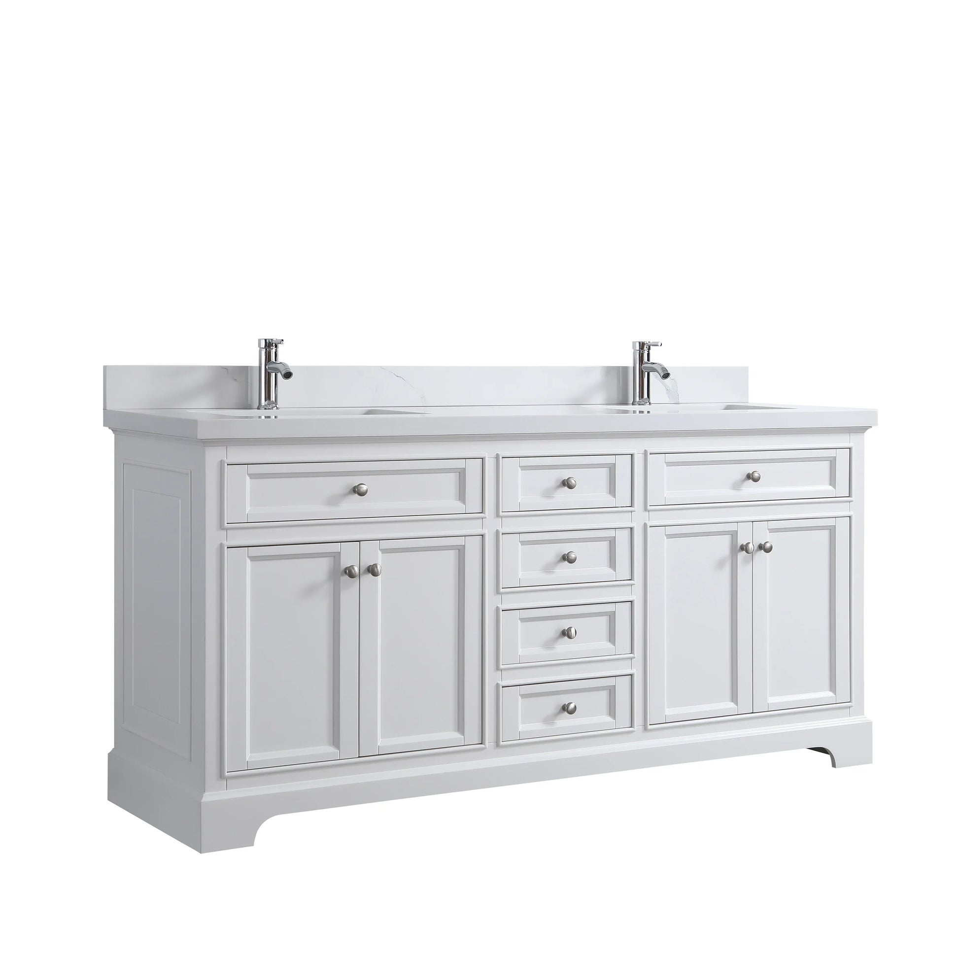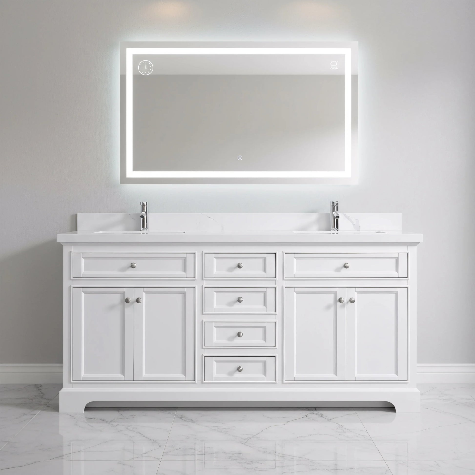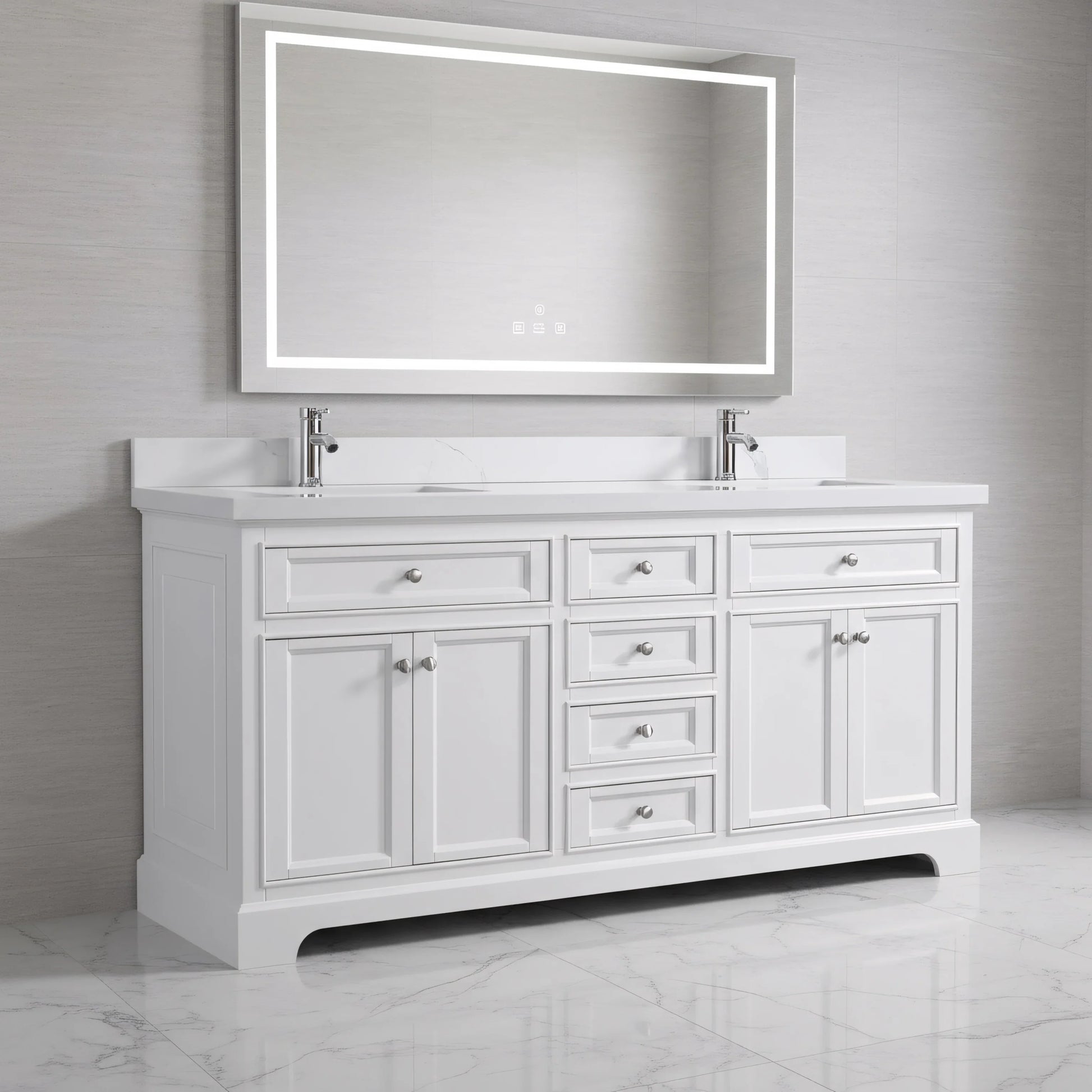 Affirmez votre style dans votre salle de bain avec la toute nouvelle collection Milan de Golden Elite. Conçue pour s'adapter aux tendances déco actuelles, cette vasque double de 72 po allie une élégante finition laquée blanc mat à la beauté intemporelle d'un plan de travail en marbre reconstitué de Calcutta.