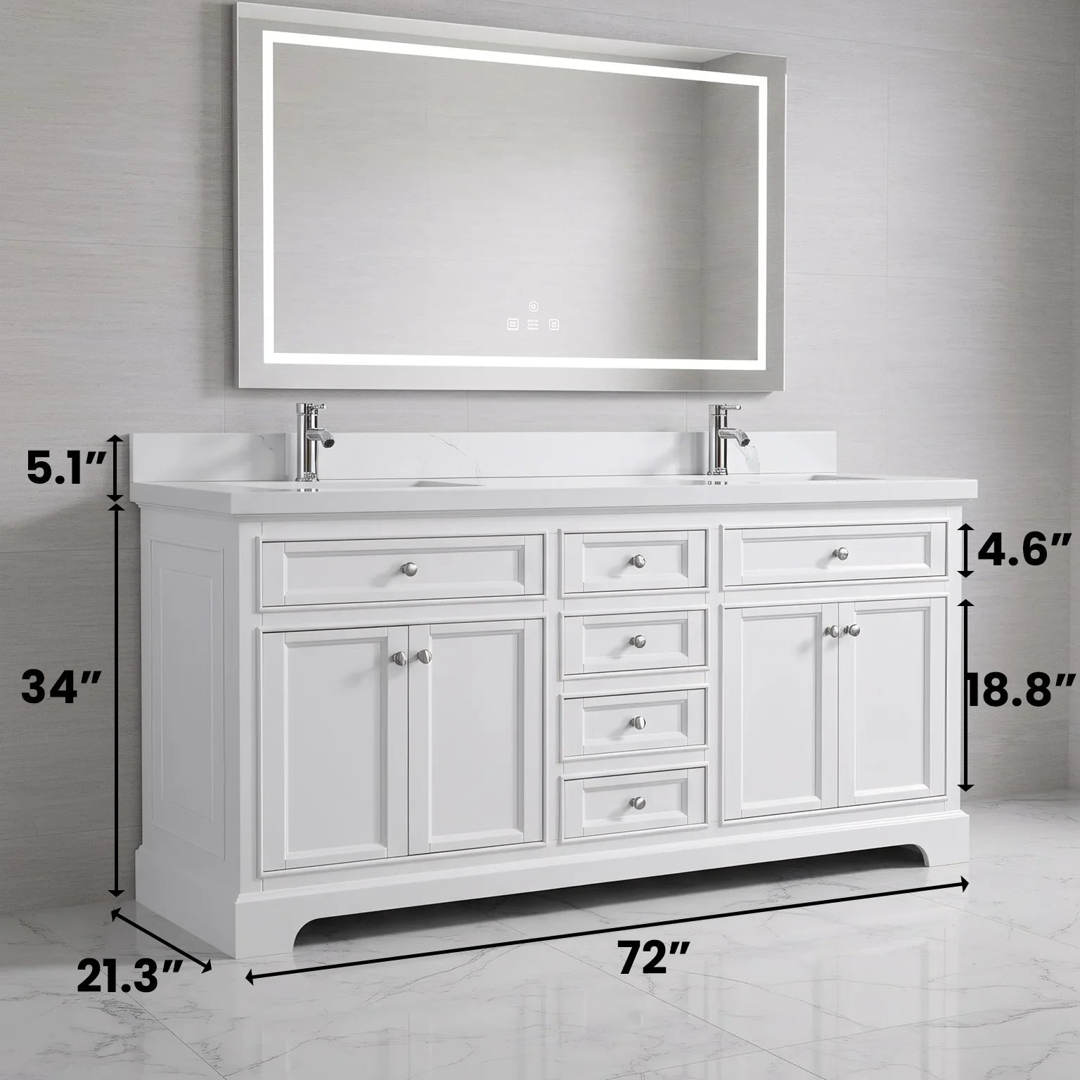 Spacieuse vanité autoportante de 72 pouces avec double vasque, idéale pour les grandes salles de bains