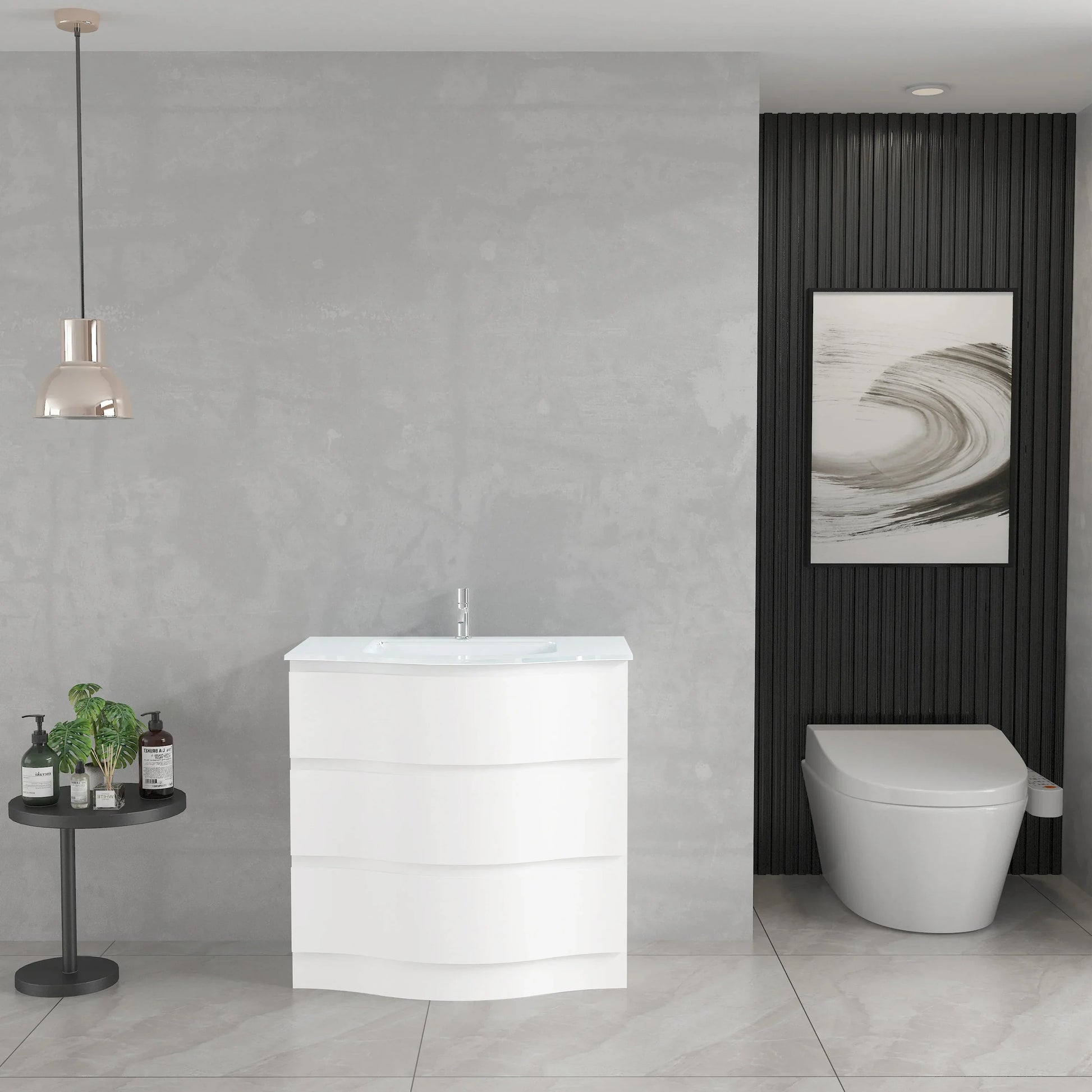 Collection Wave - Vanités Blanc Mat avec Comptoirs de Verre