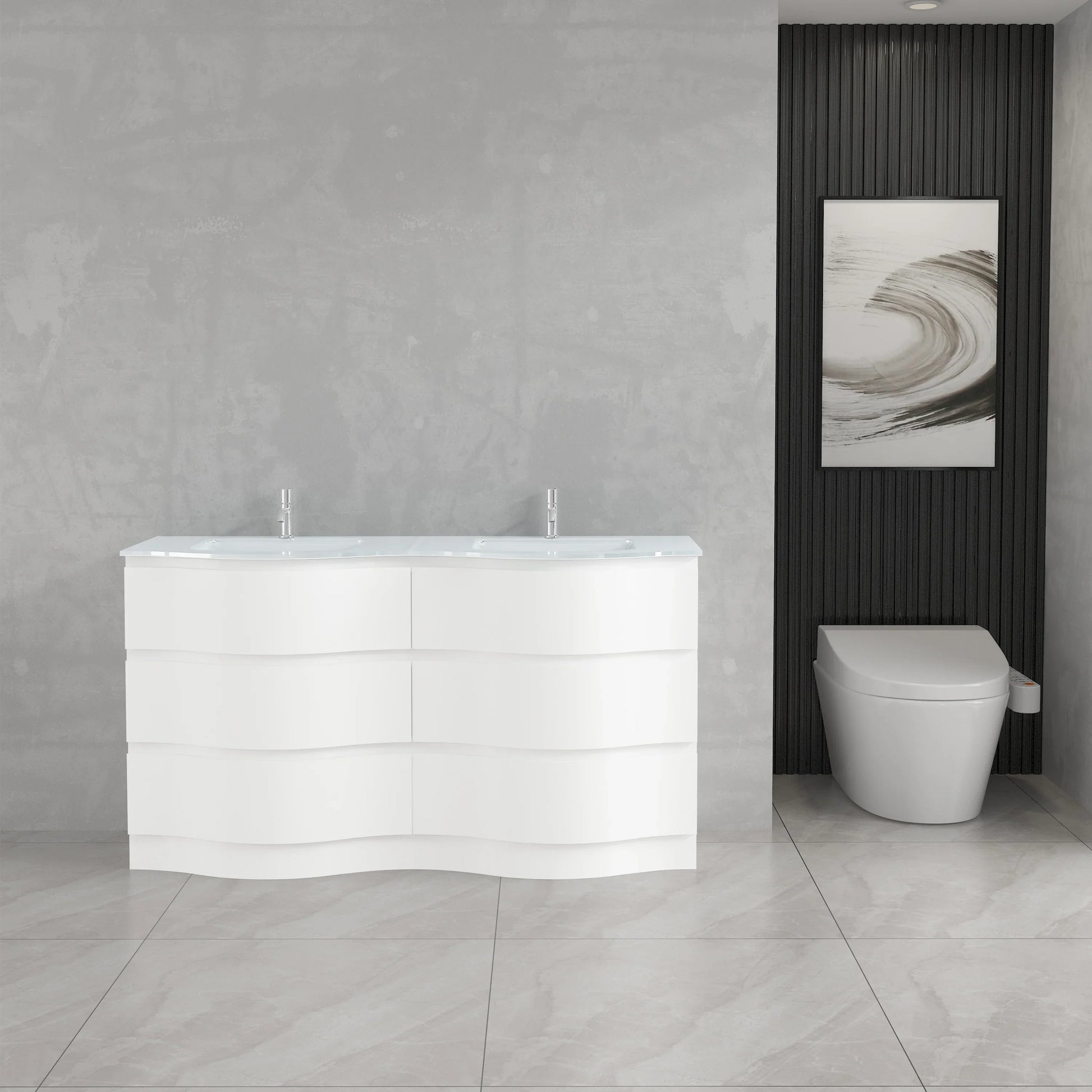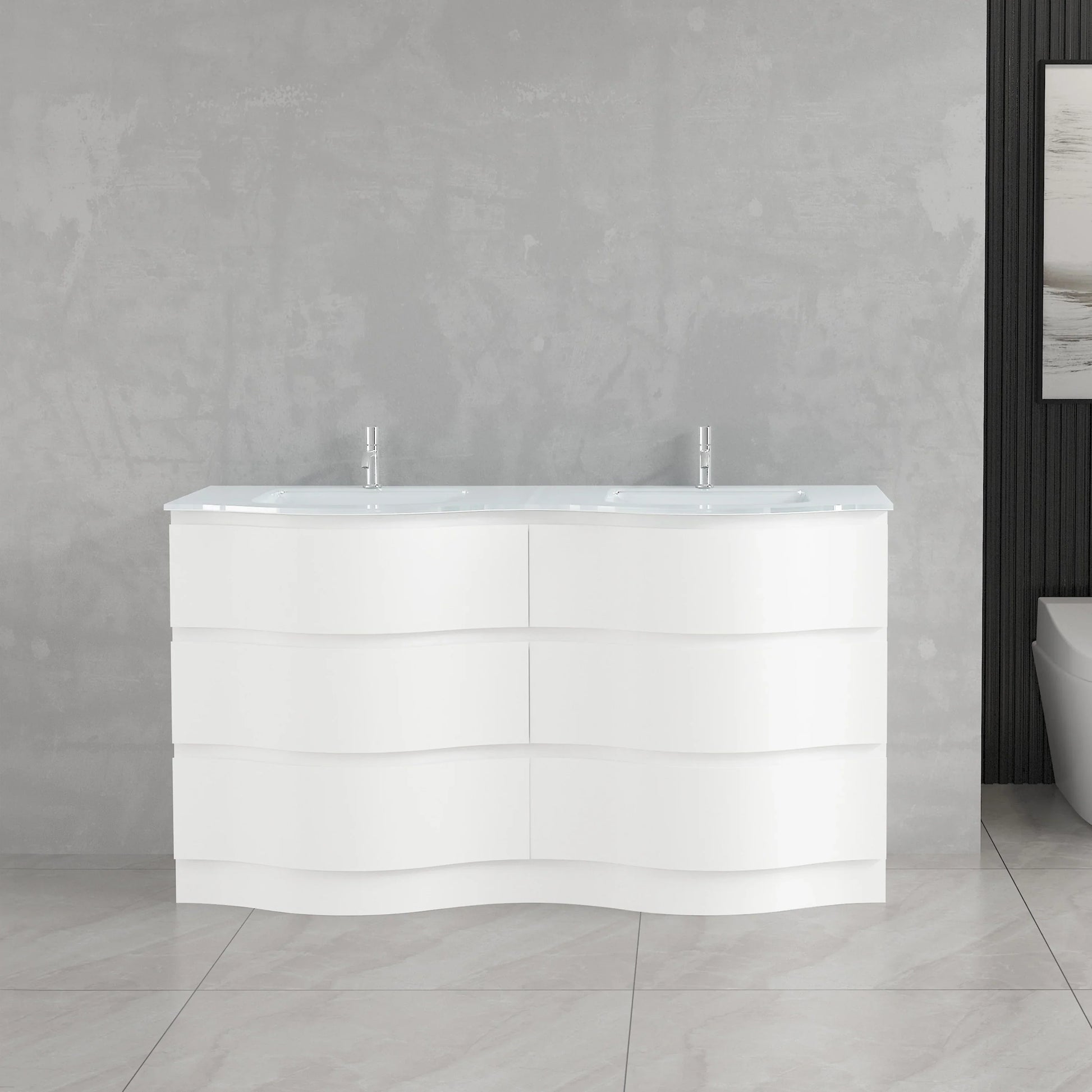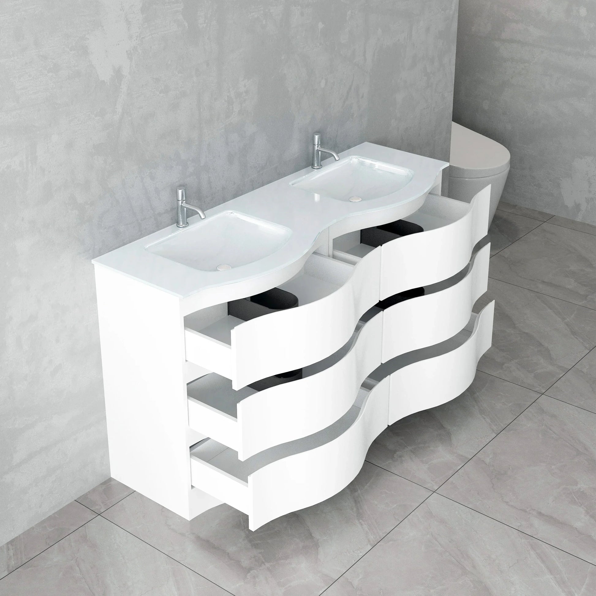 Collection Wave - Vanités Blanc Mat avec Comptoirs de Verre