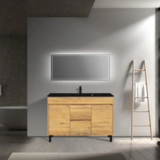 Meuble-Lavabo Autoportant 48po Chêne Givré avec Comptoir de Céramique Noir
