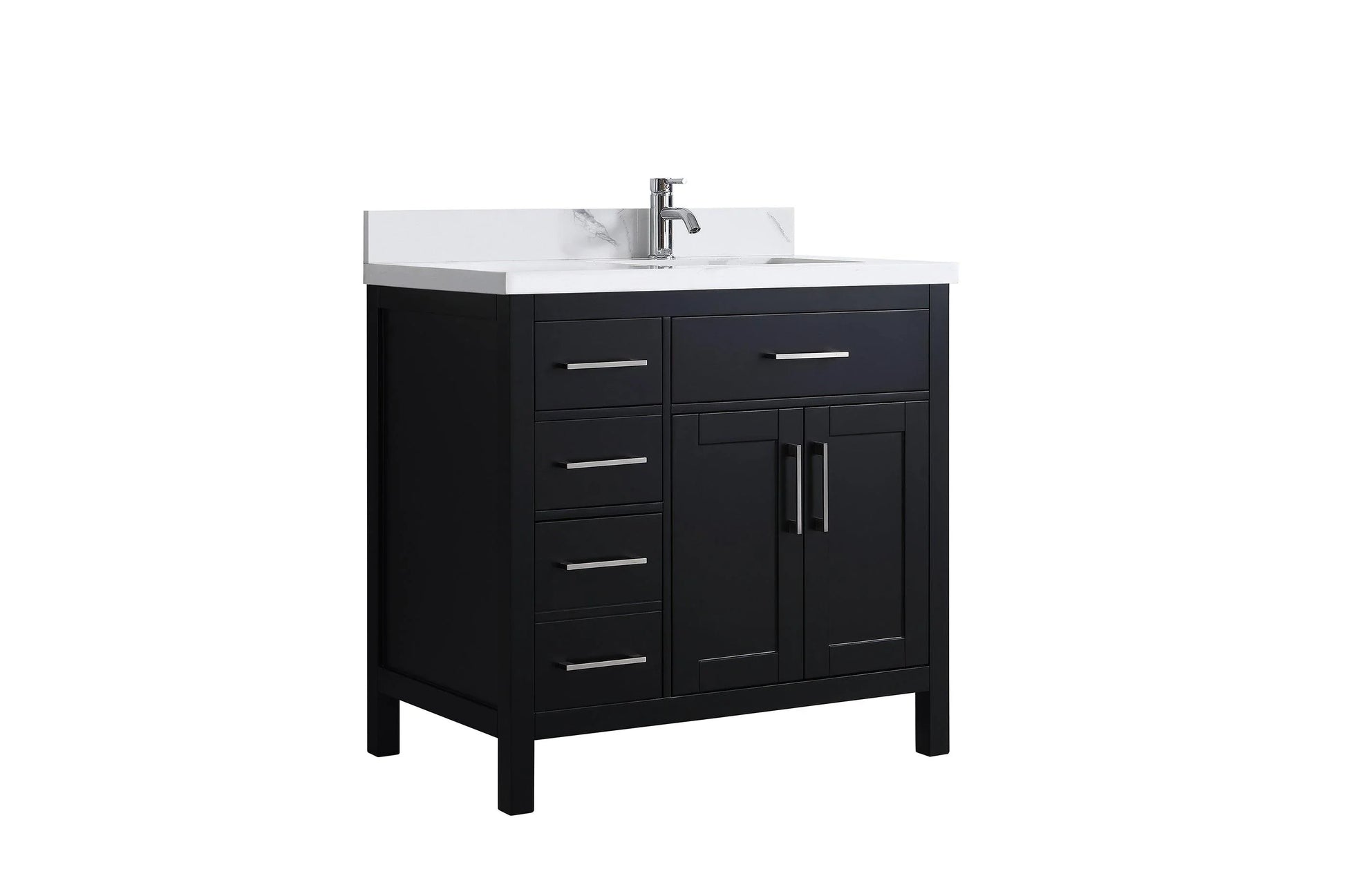 Meuble-Lavabo Autoportant 36 po Noir avec Comptoir de Marbre Ingénierie Calcutta