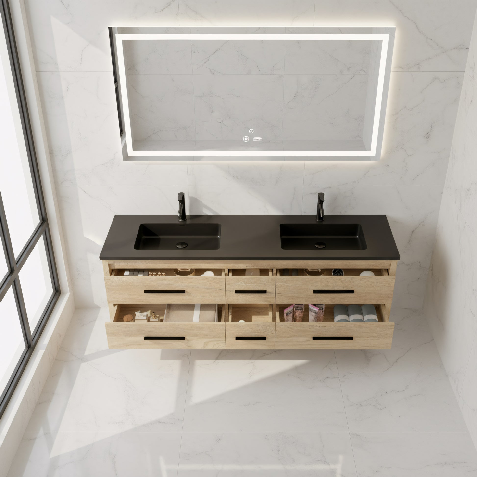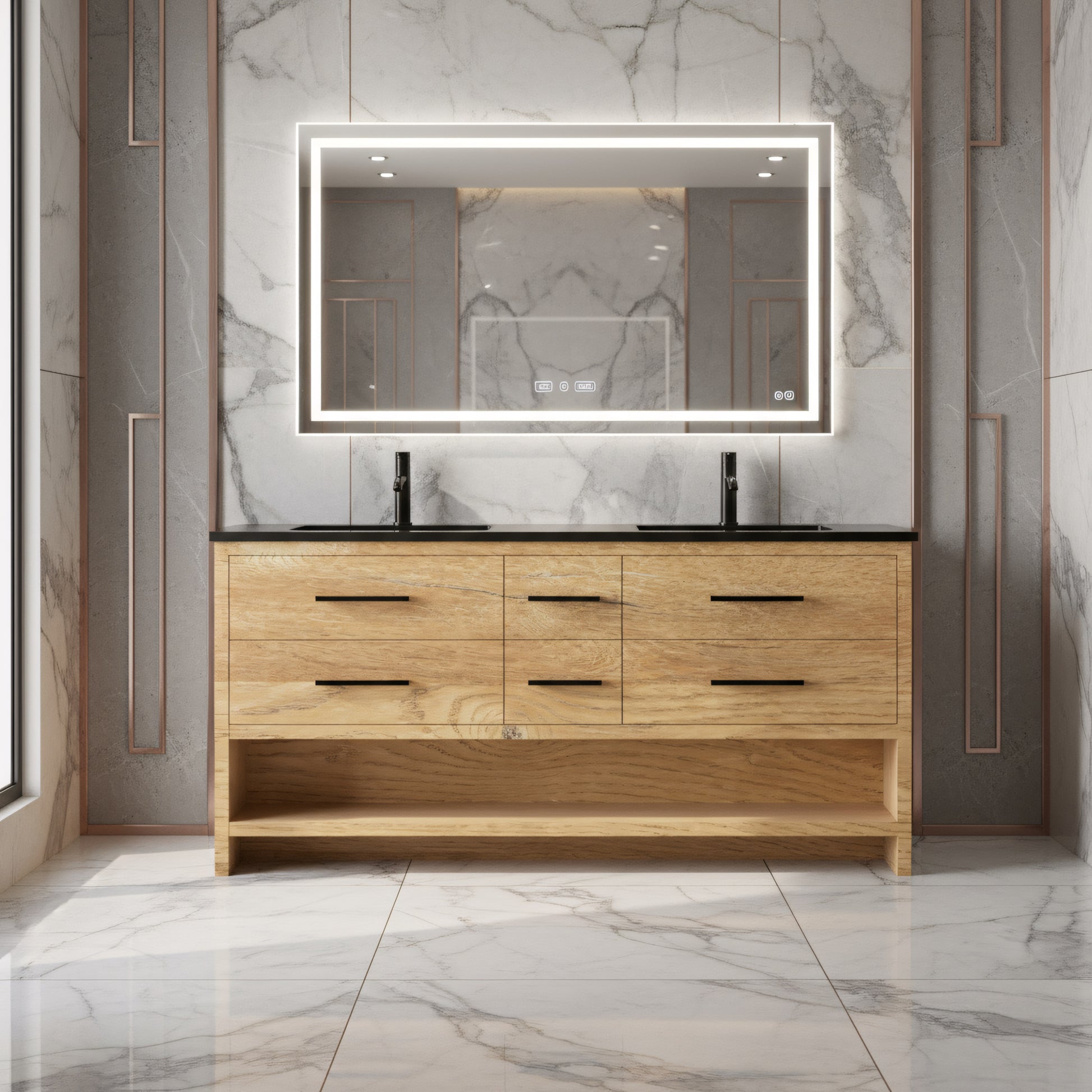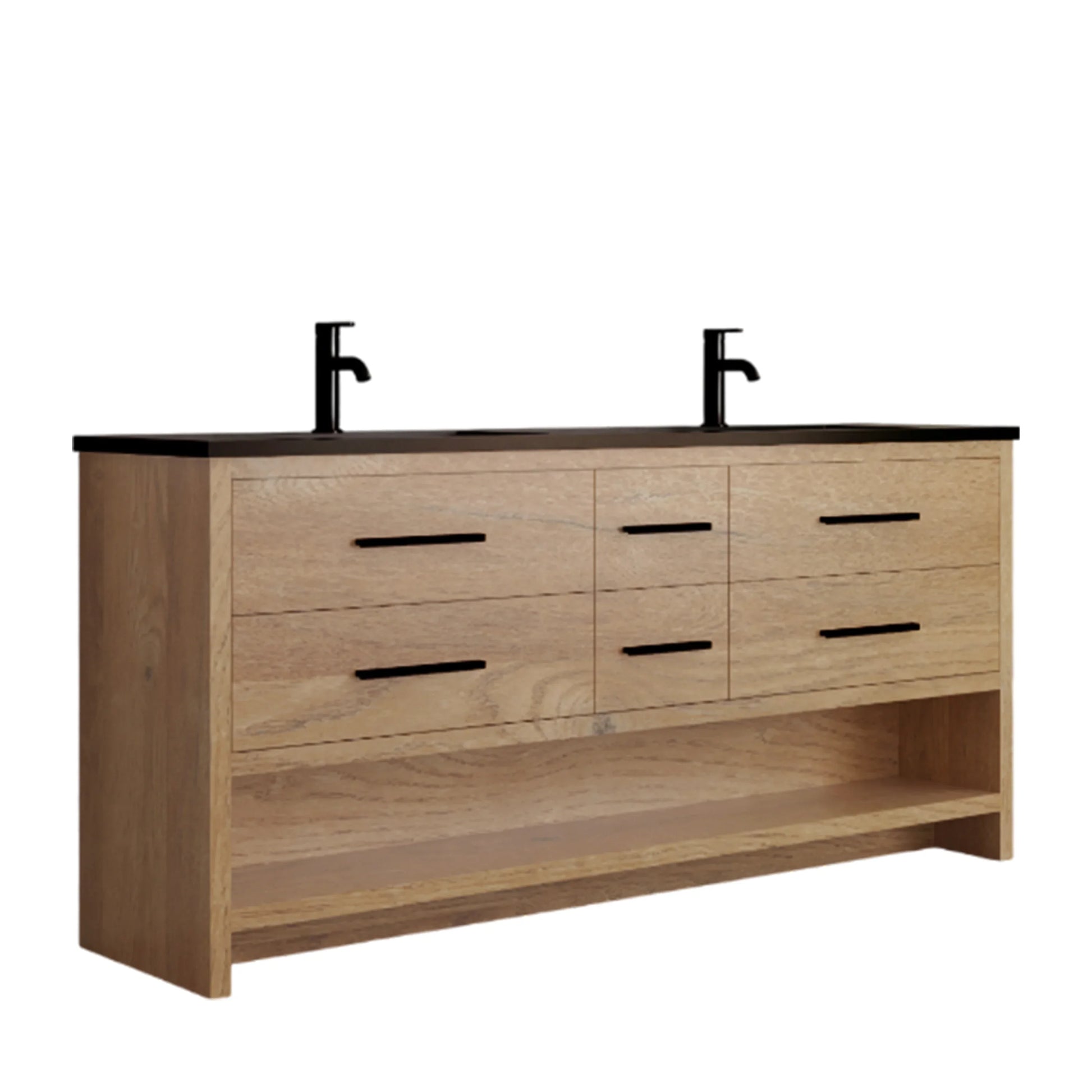 Meuble-Lavabo Autoportant 72po Chêne Brut avec Comptoir de Quartz d'ingénierie Noir