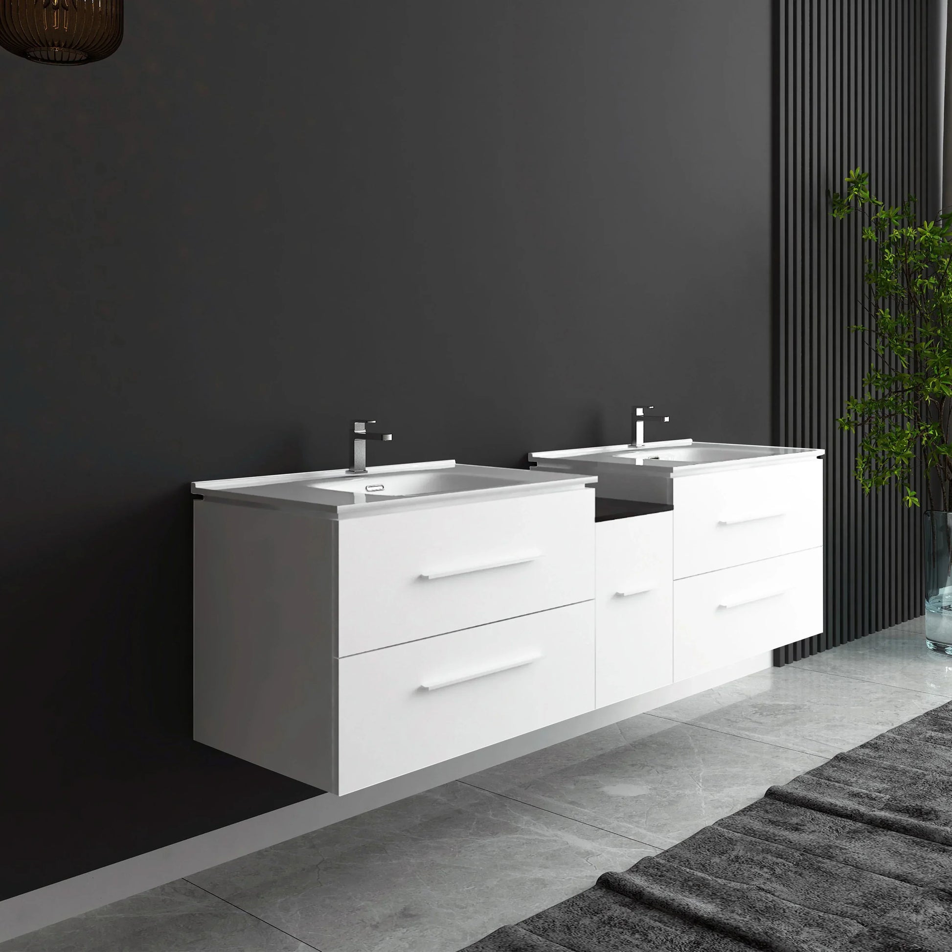 Meuble-Lavabo Mural 72po Blanc Mat avec Comptoir de Céramique Blanc