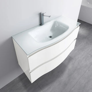 Meuble-Lavabo Mural 48po Blanc Mat avec Comptoir de Verre Blanc