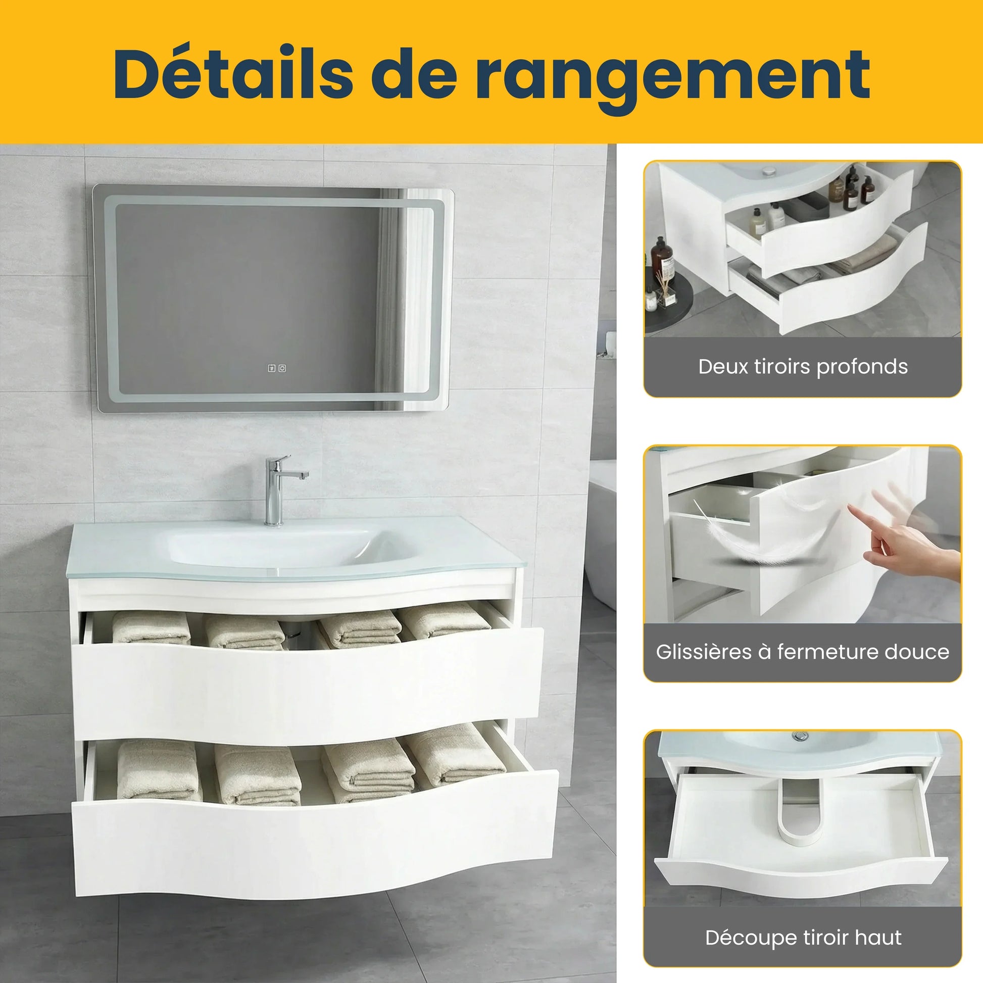 Collection Wave - Vanités Blanc Mat avec Comptoirs de Verre