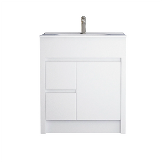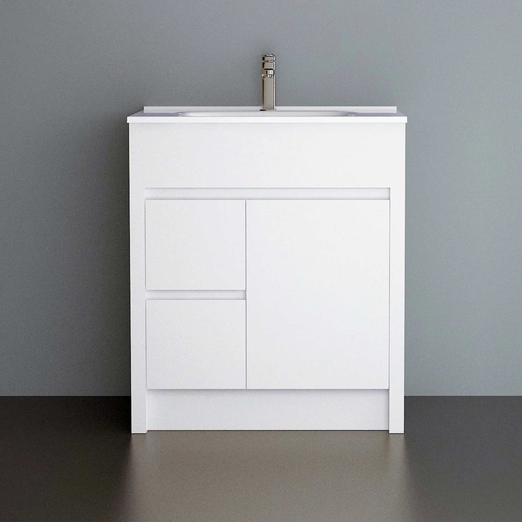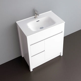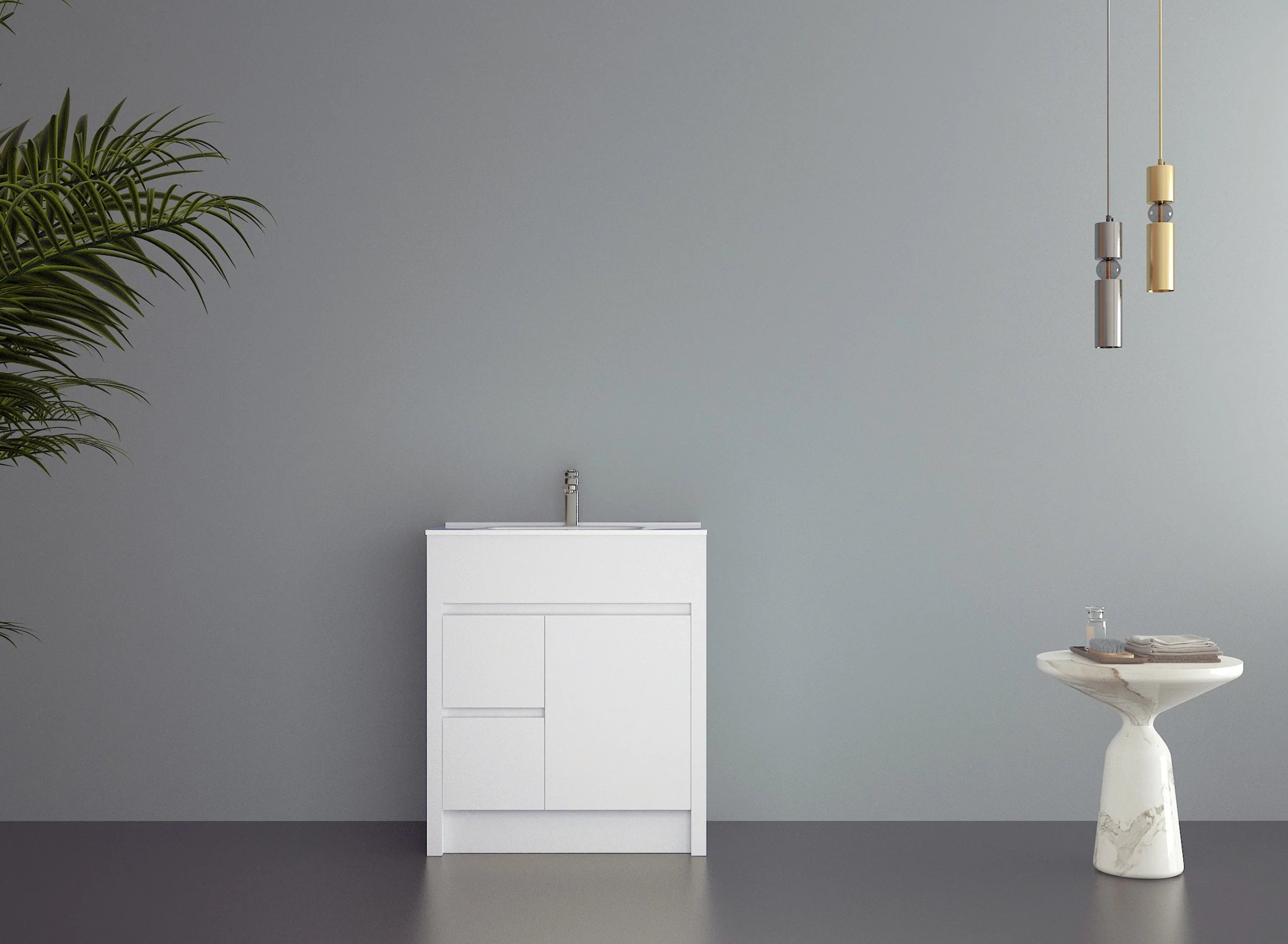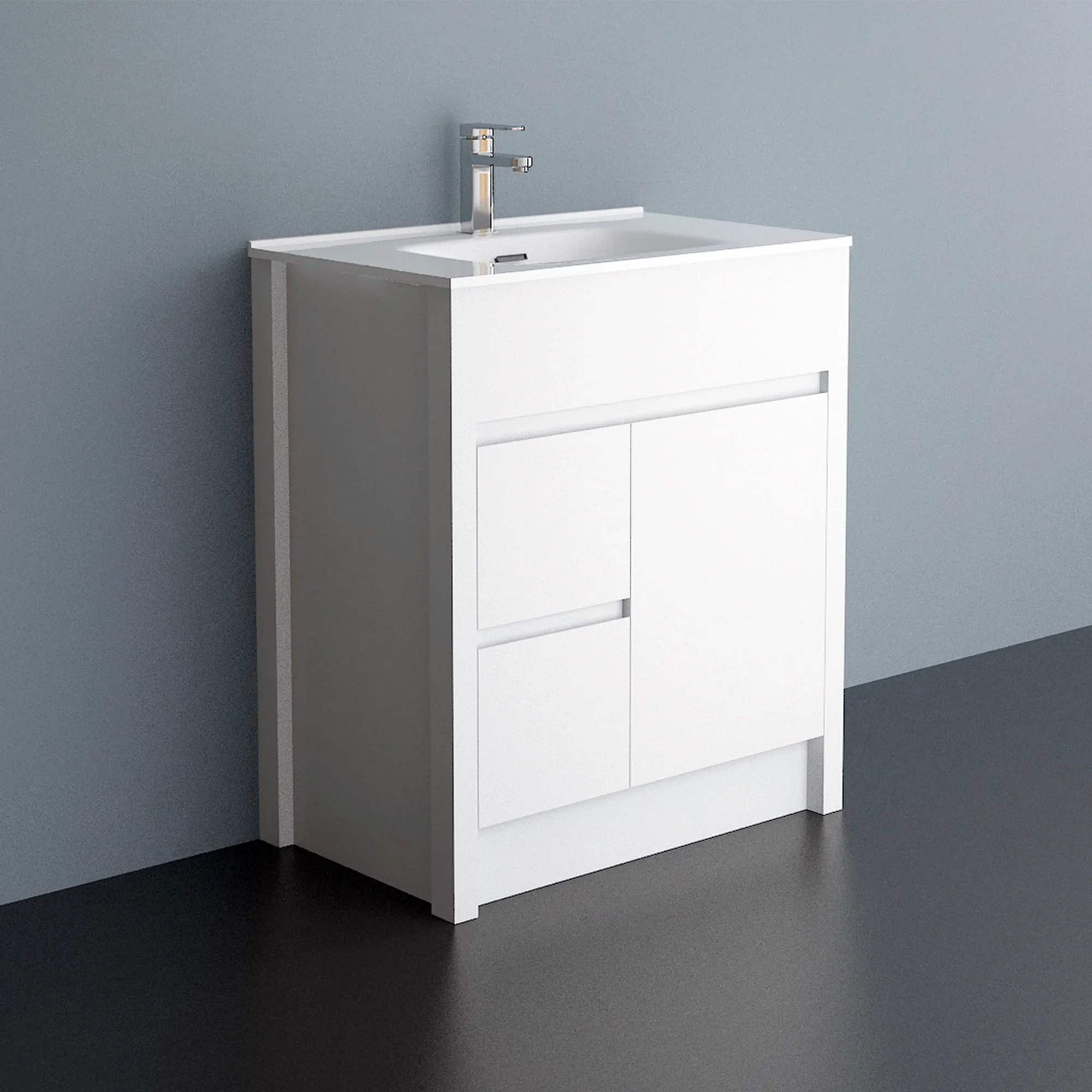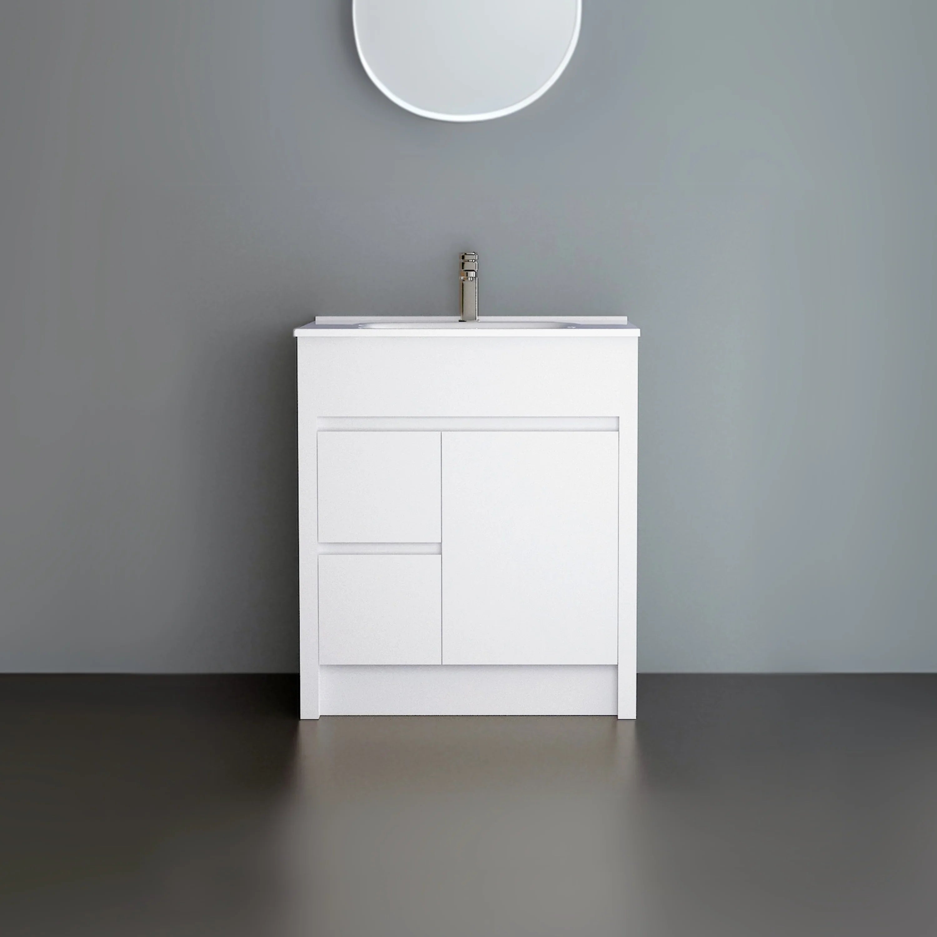 Meuble-Lavabo Autoportant 30po Blanc Mat avec Comptoir de Céramique Blanc