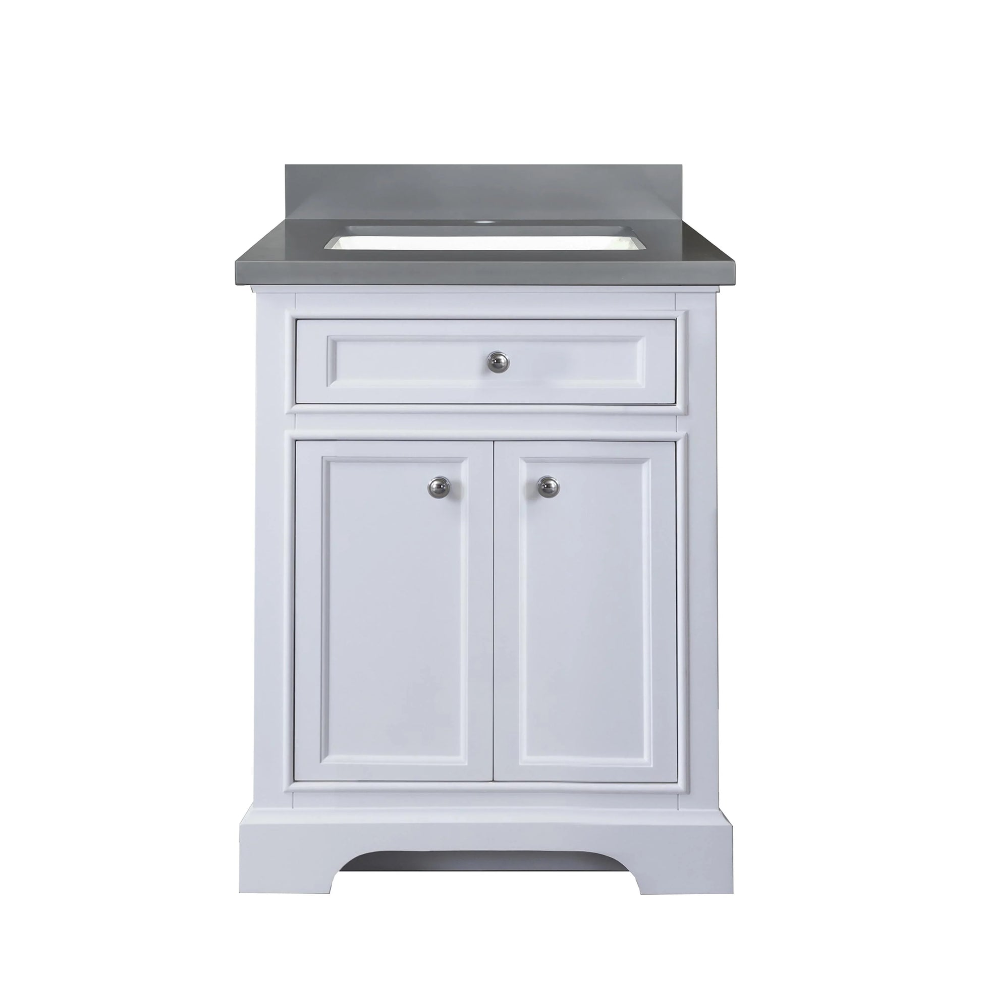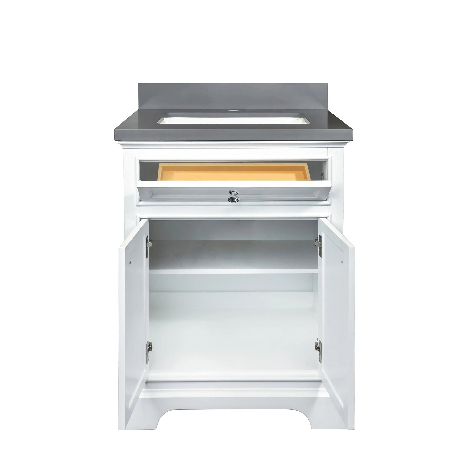 Meuble Lavabo Autoportant Blanc 24po avec Comptoir en Quartz Calypso et Lavabo Simple
