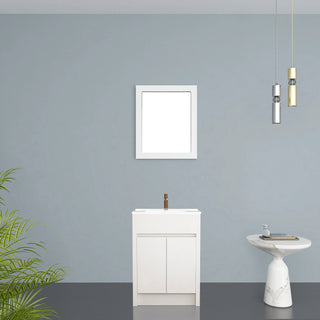 Miroir Rectangulaire Encadré en Blanc Mat 24 po - Conçu pour Installation Horizontale & Verticale
