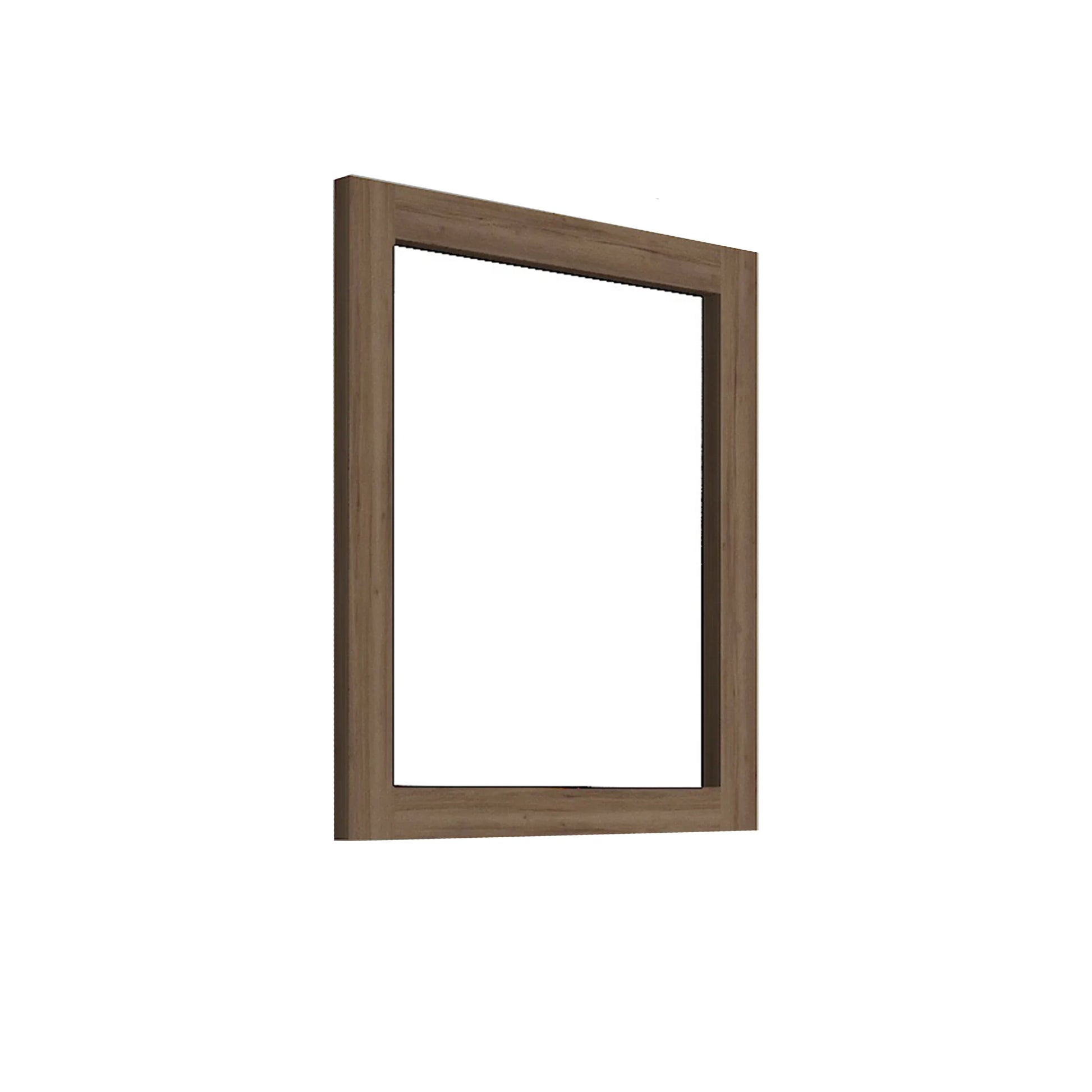 Miroir argenté générique polyvalent de 24 pouces avec cadre en finition chêne givré, conçu pour une suspension facile à la fois verticalement et horizontalement des orientations pour s'adapter parfaitement à votre espace et une touche contemporaine à toute salle de bain.