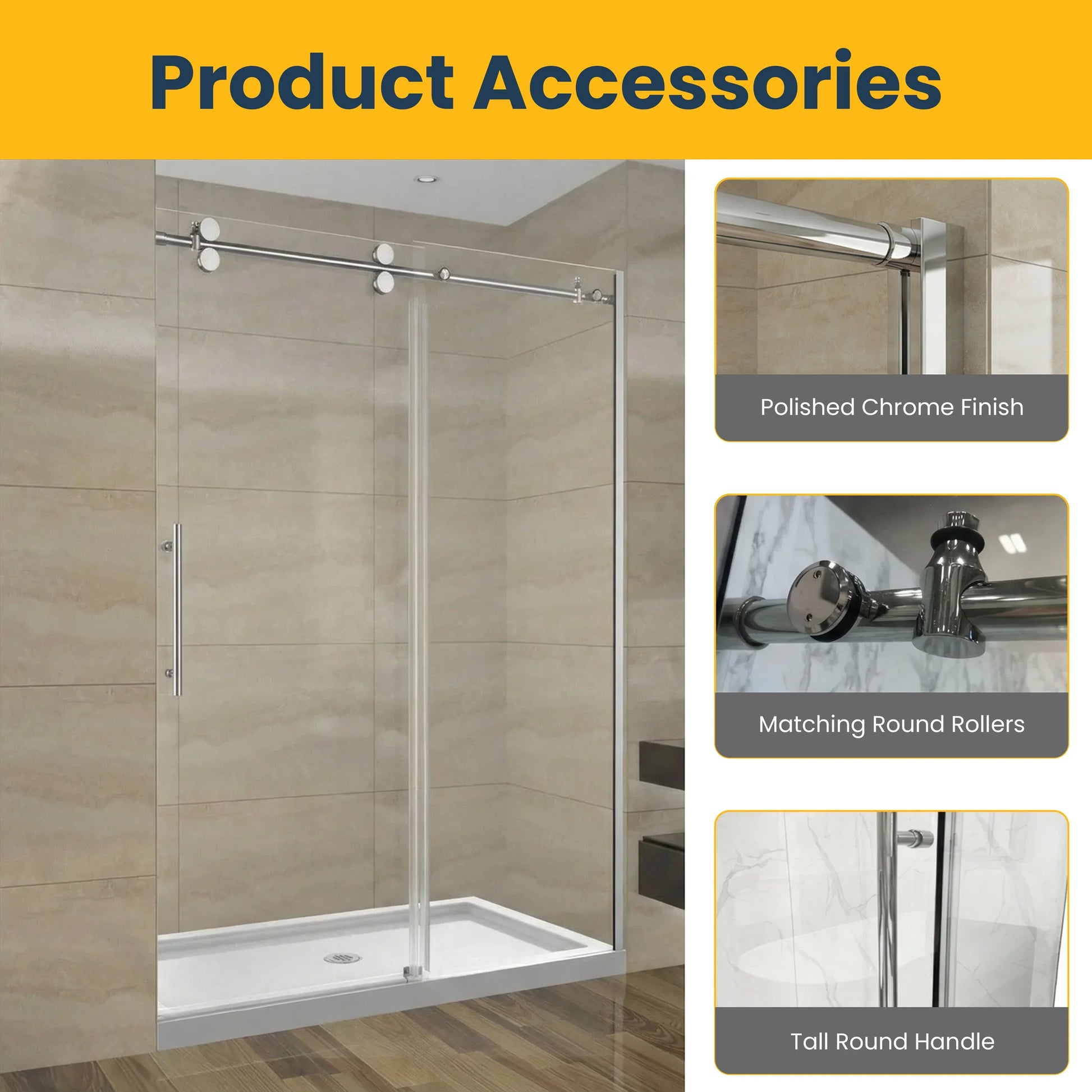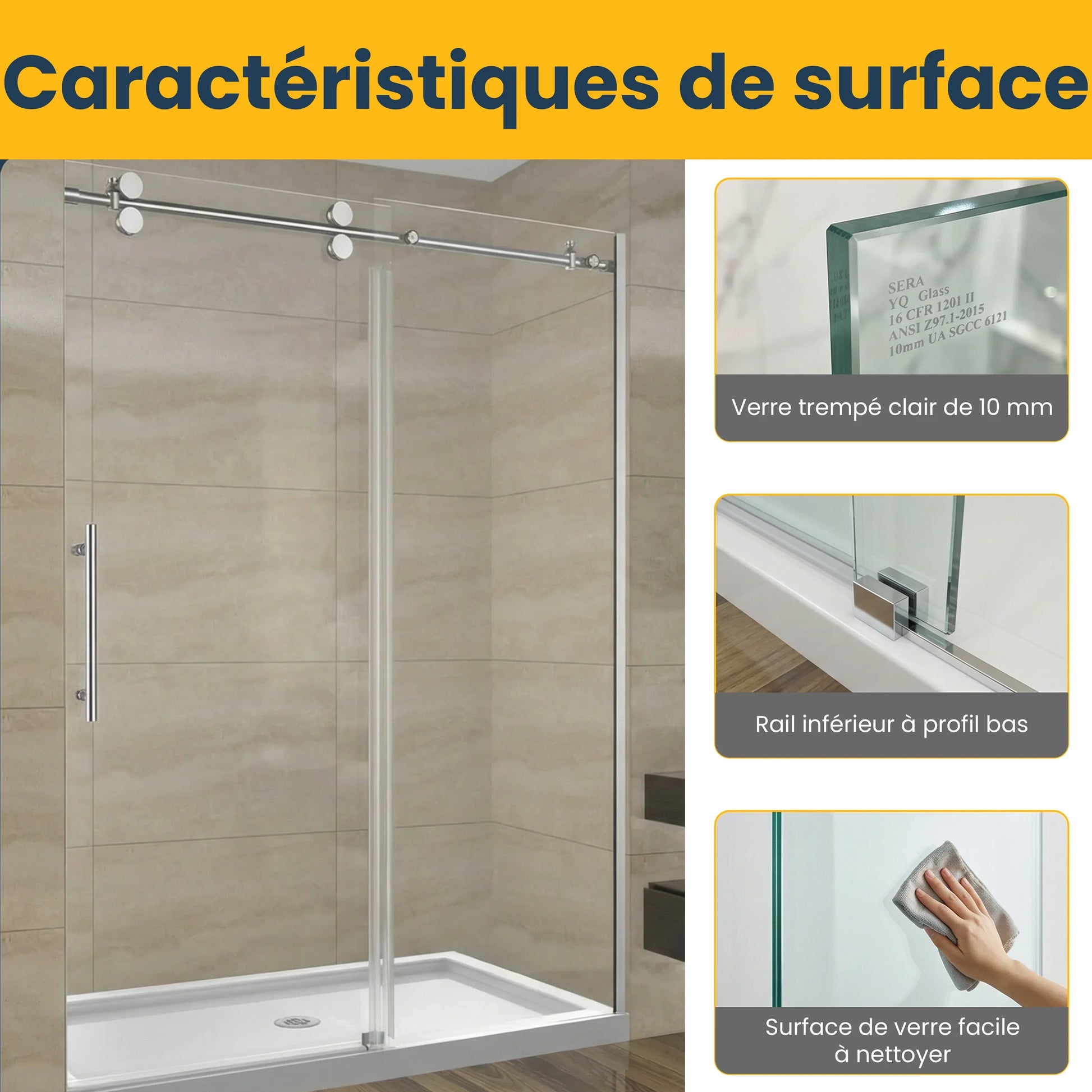 Transformez votre salle de bain en un espace moderne et élégant avec cette magnifique porte de douche coulissante réversible de 60po x 75po pour installation en alcôve. Dotée d'un verre trempé de 10mm et d'une quincaillerie ronde au fini chrome poli, cette porte offre un équilibre parfait entre style contemporain et durabilité exceptionnelle.