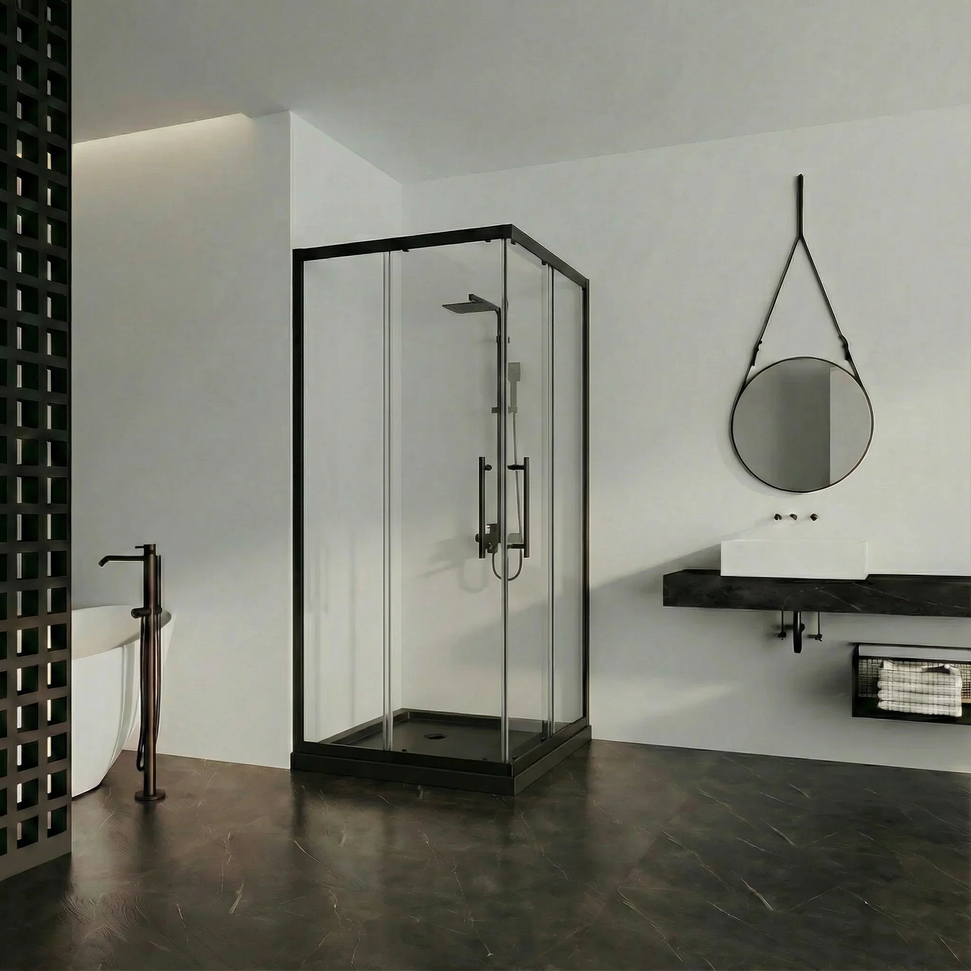 Complétez votre rénovation en agençant cette douche avec un meuble lavabo noir pour un look designer cohérent.