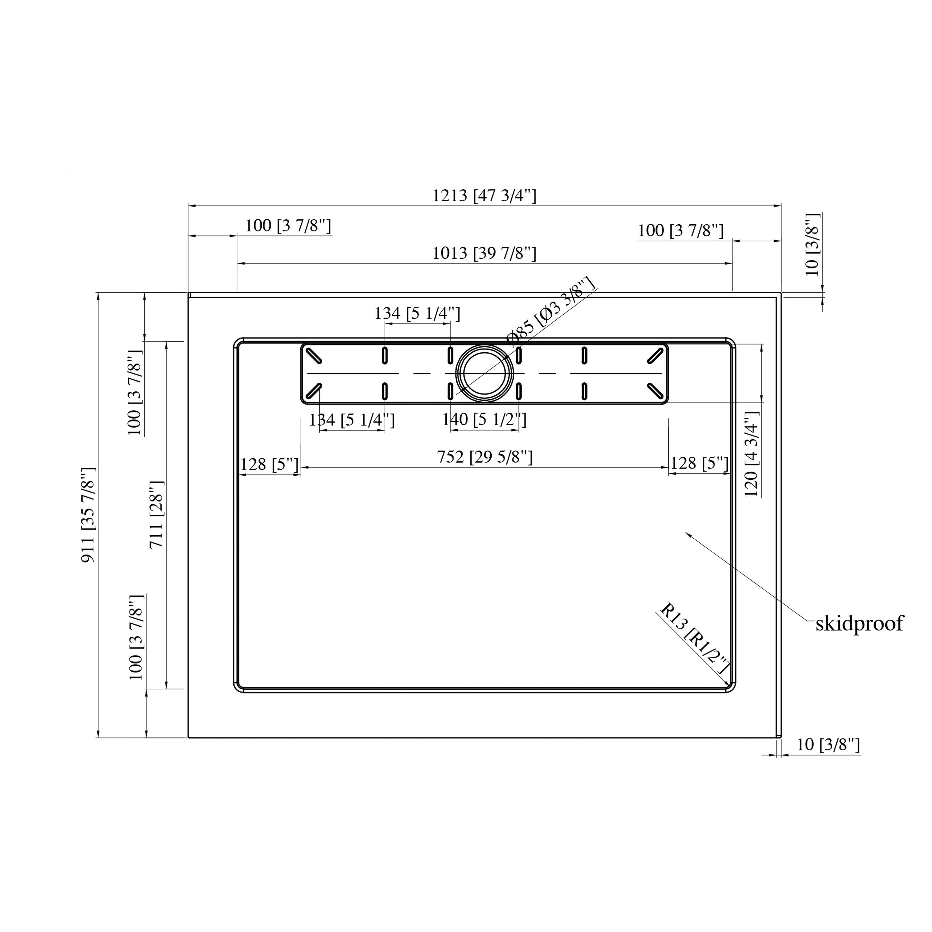 Base de Douche Acrylique Rectangulaire Blanc 48 po x 36 po - Installation 2 Murs - Drain Linéaire à Droite