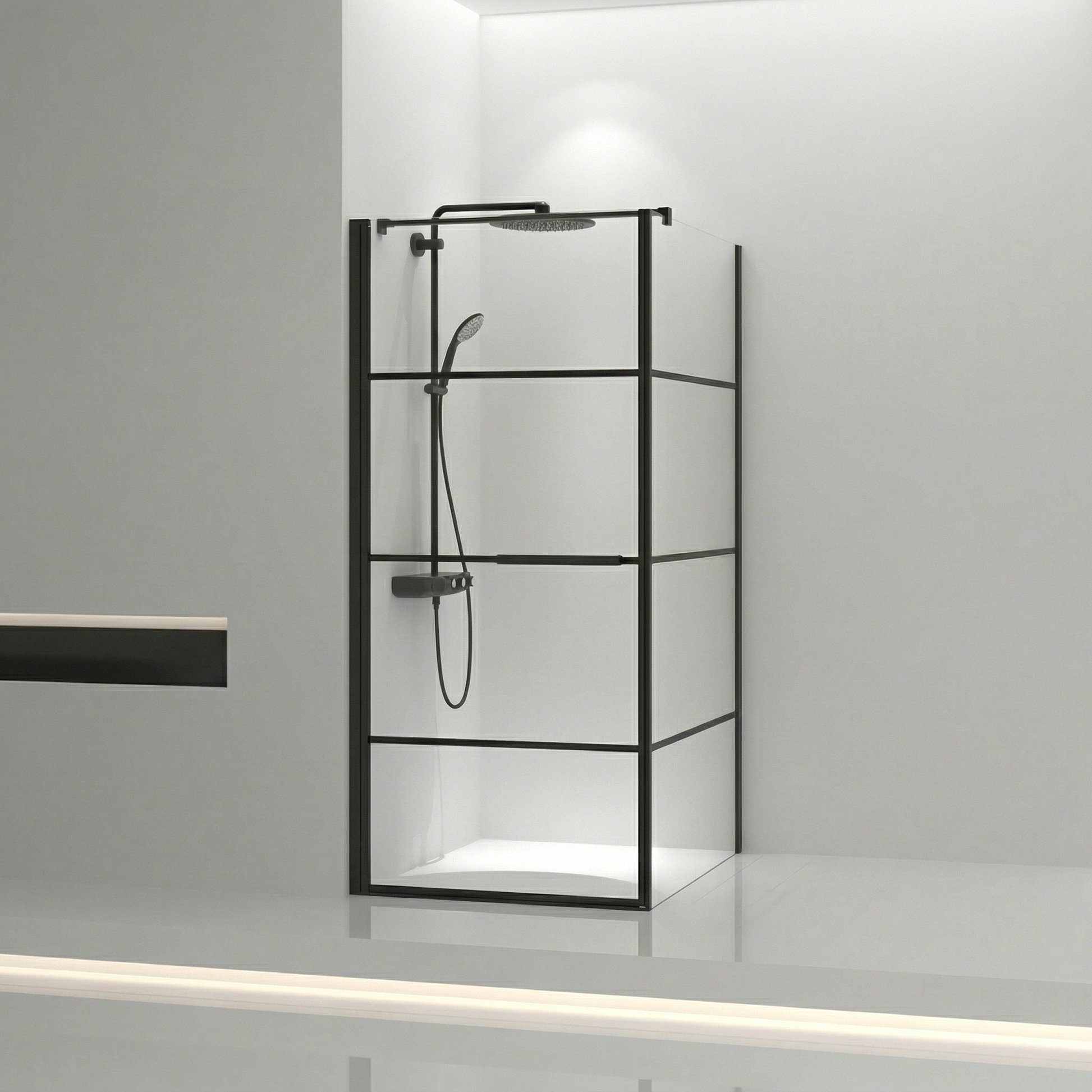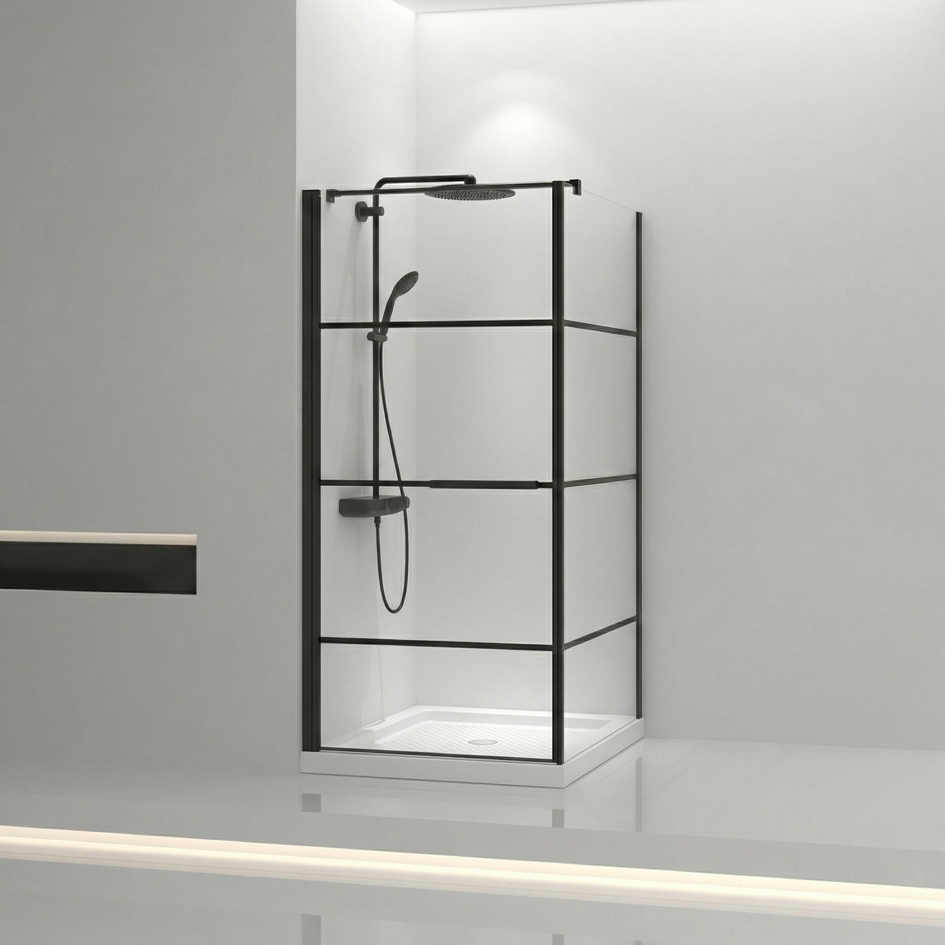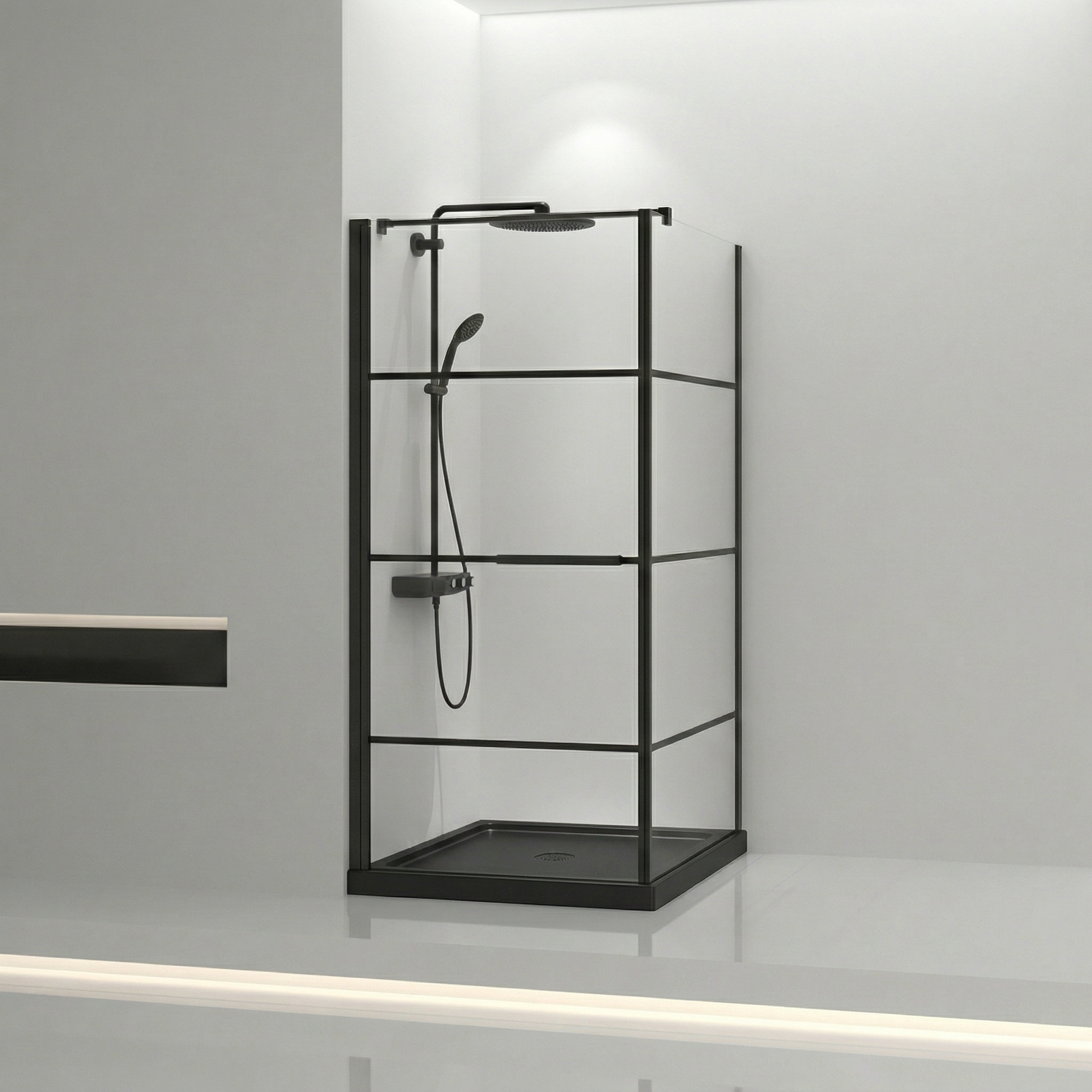 La cabine de douche Tina Collection 36po x 36po apporte ce style industriel-moderne tant recherché dans les salles de bain montréalaises. Les lignes horizontales noir mat contrastent avec le verre trempé transparent de 8mm pour créer une présence architecturale saisissante.