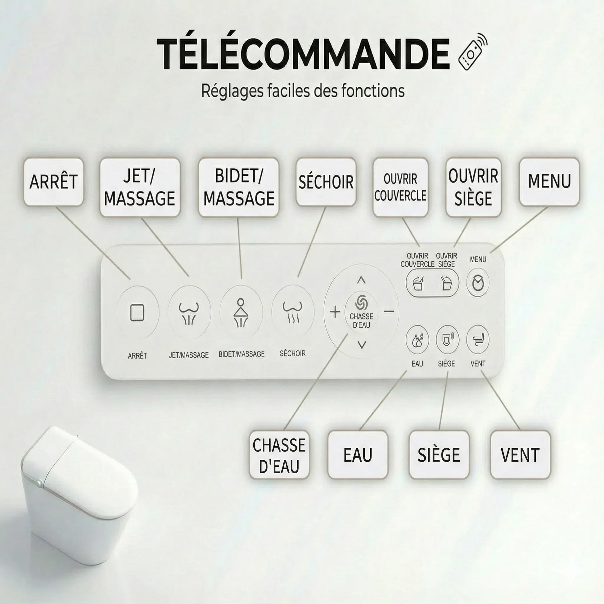 - Bidet avec contrôle de température : modes de lavage féminin et hanche.