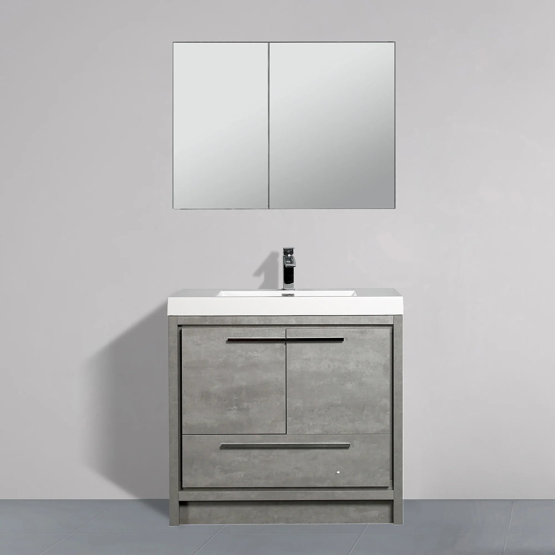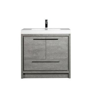 Meuble-Lavabo Autoportant 36po Ciment avec Comptoir de Polymarbre Blanc