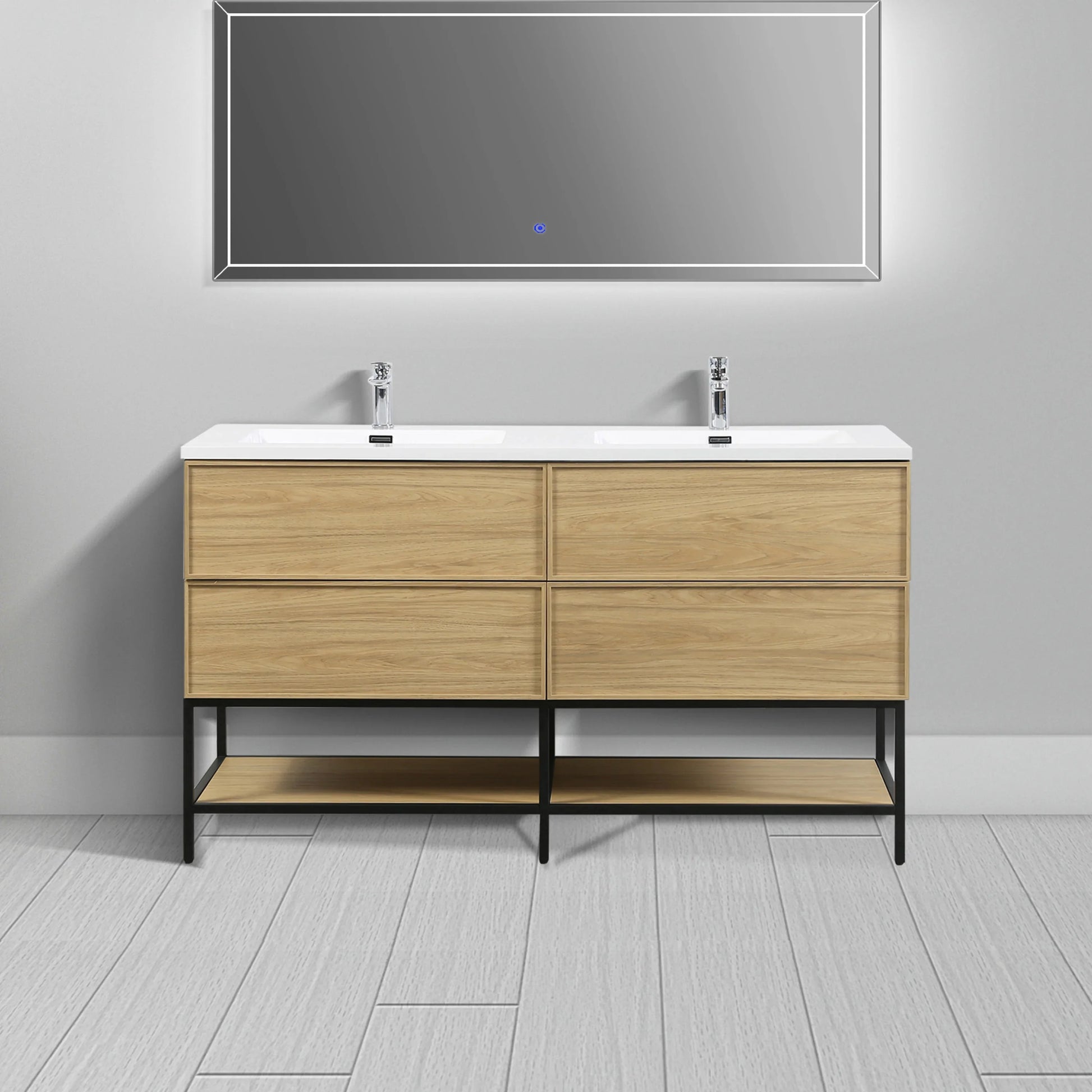 Transformez votre salle de bain avec ce magnifique meuble lavabo double vasque de 60 pouces de notre Collection Luxe. La finition noyer couchant apporte chaleur et raffinement, tandis que le comptoir en polymarbre blanc crée une élégance intemporelle.