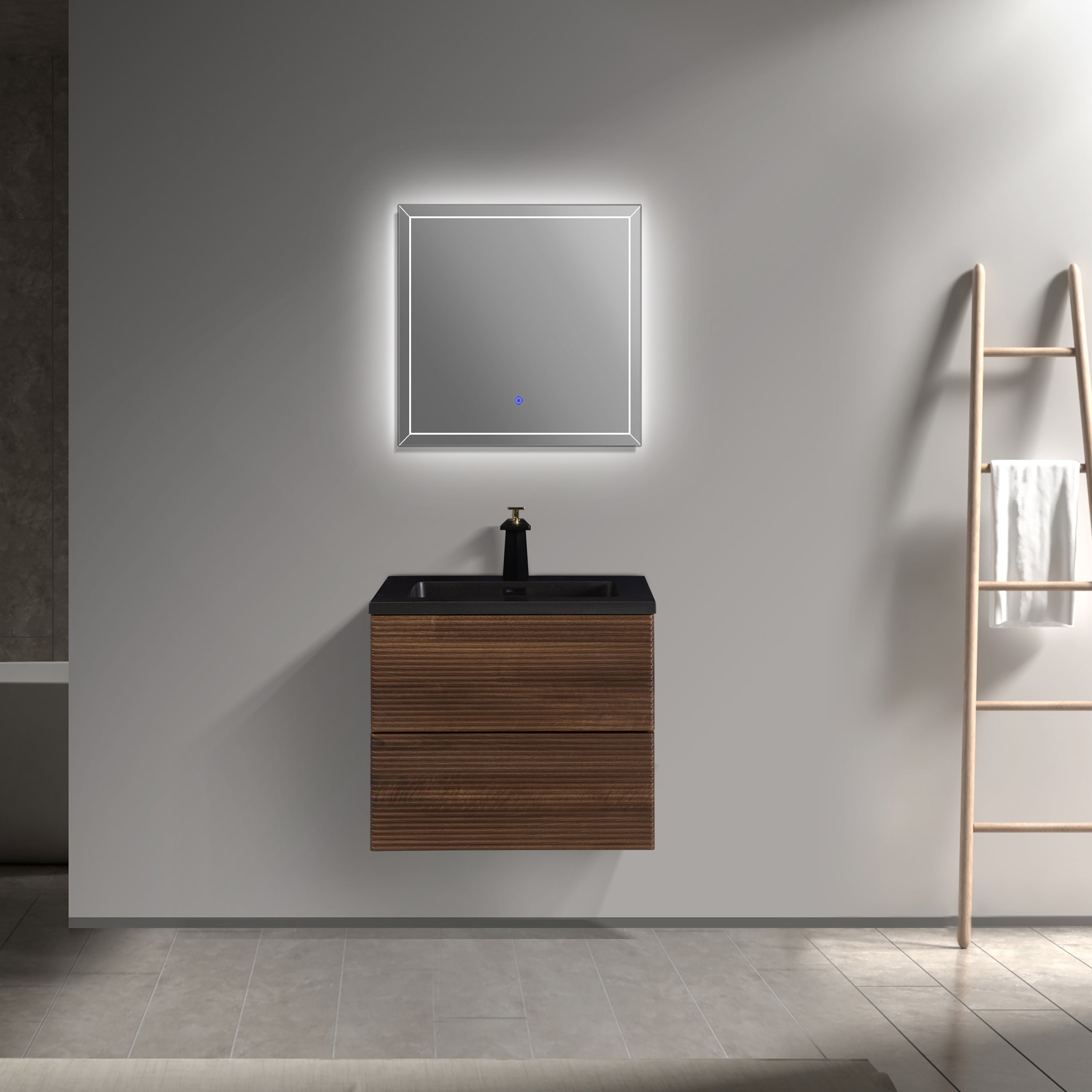 • Meuble-lavabo mural en noyer de 24 pouces avec dessus en quartz noir icon