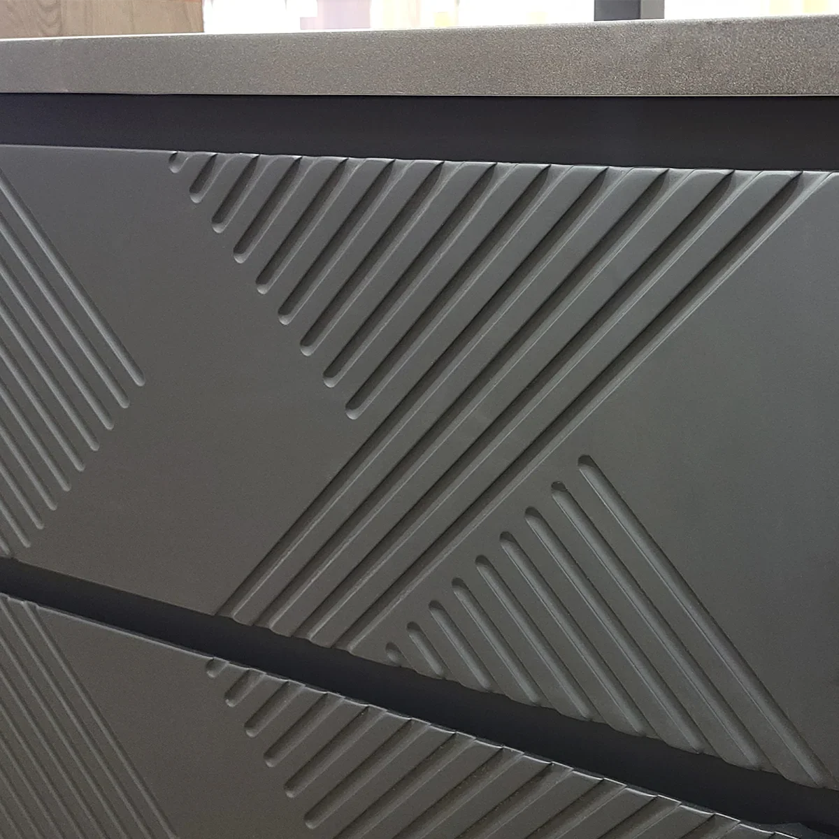 - Détails architecturaux : Panneaux avant rainurés distinctifs pour une texture sophistiquée