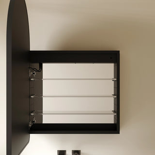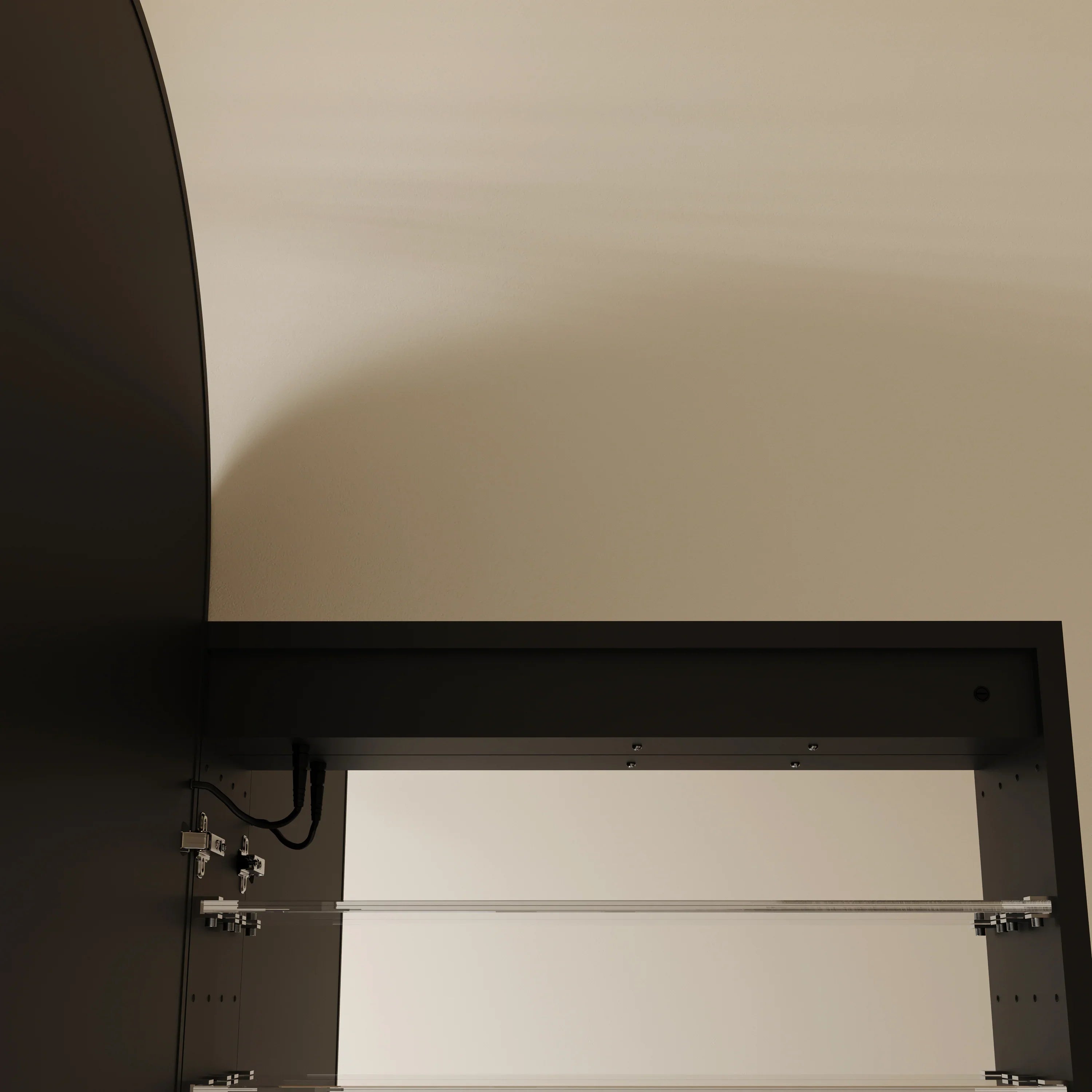 24" x 36" Arched LED Medicine Cabinet with Matte Black Aluminum Frame - Smart Anti-Fog Mirror with 3 Color Temperatures (3000K-6000K), USB/Power Outlets, Removable Side Mirror & Dual Mount Options