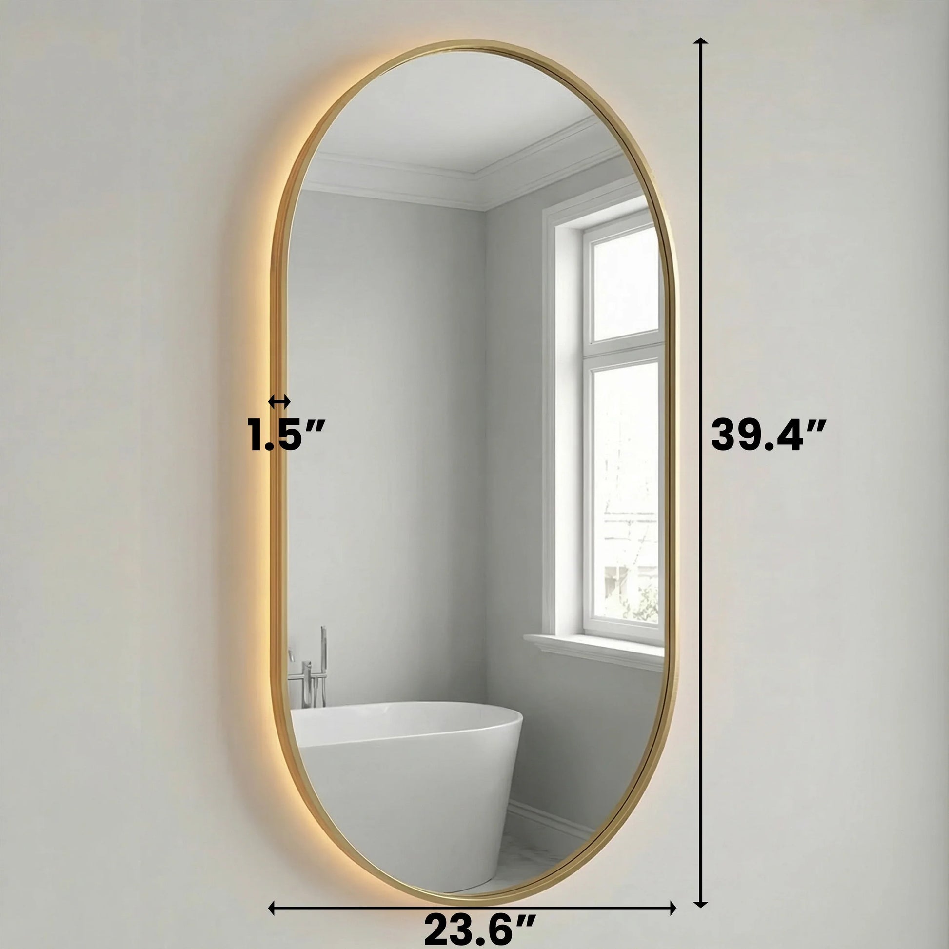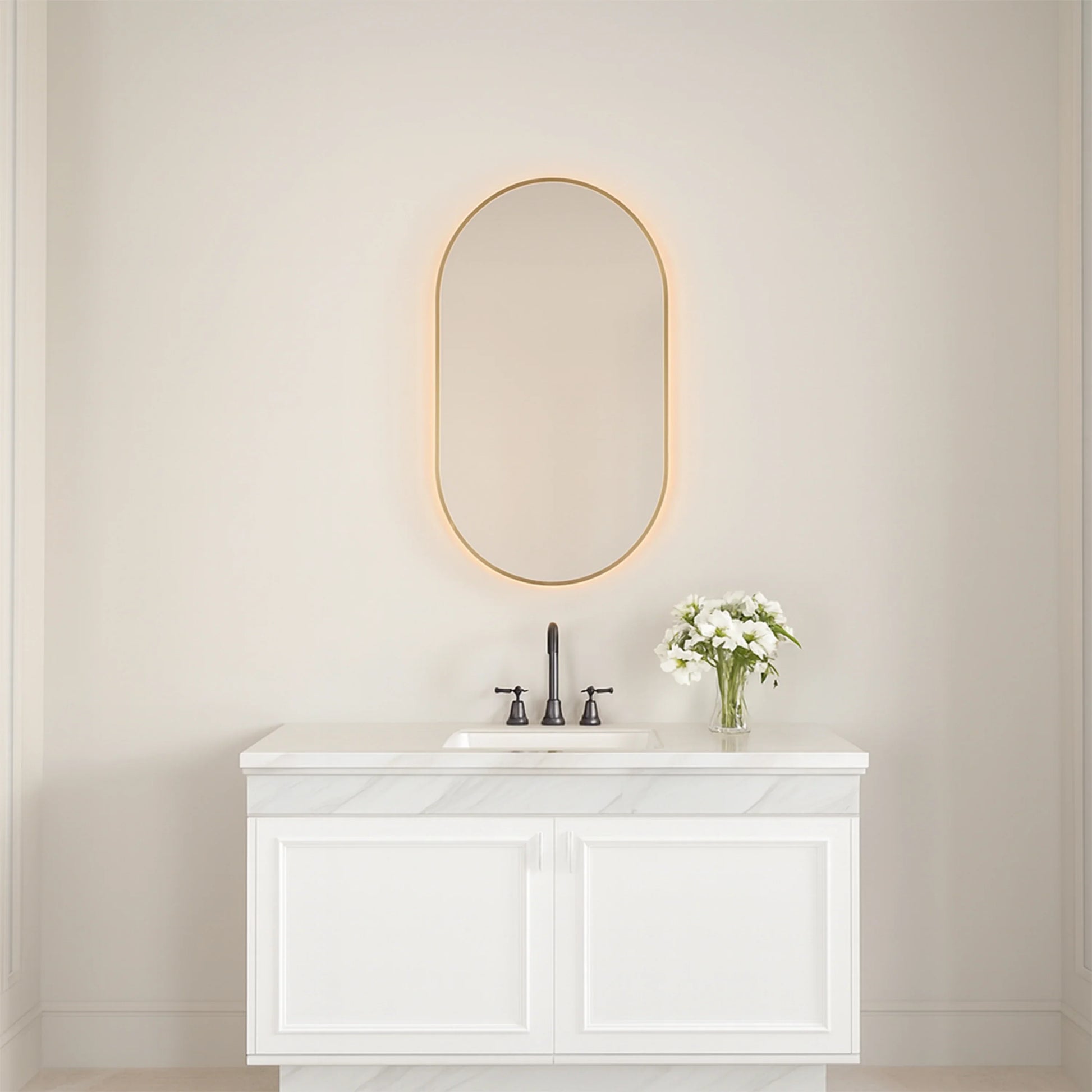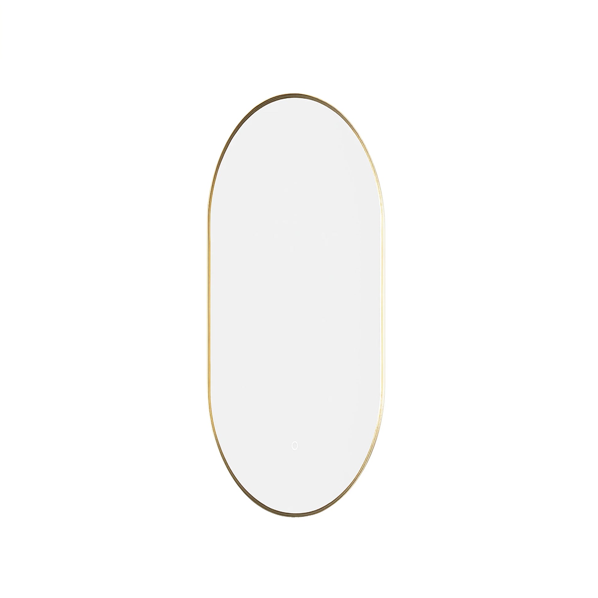 Elevate your bathroom with the sophisticated 24" x 40" LED Oval Mirror featuring a stunning brushed gold frame. This elegant mirror combines timeless oval design with modern LED technology, creating the perfect focal point above your vanity.