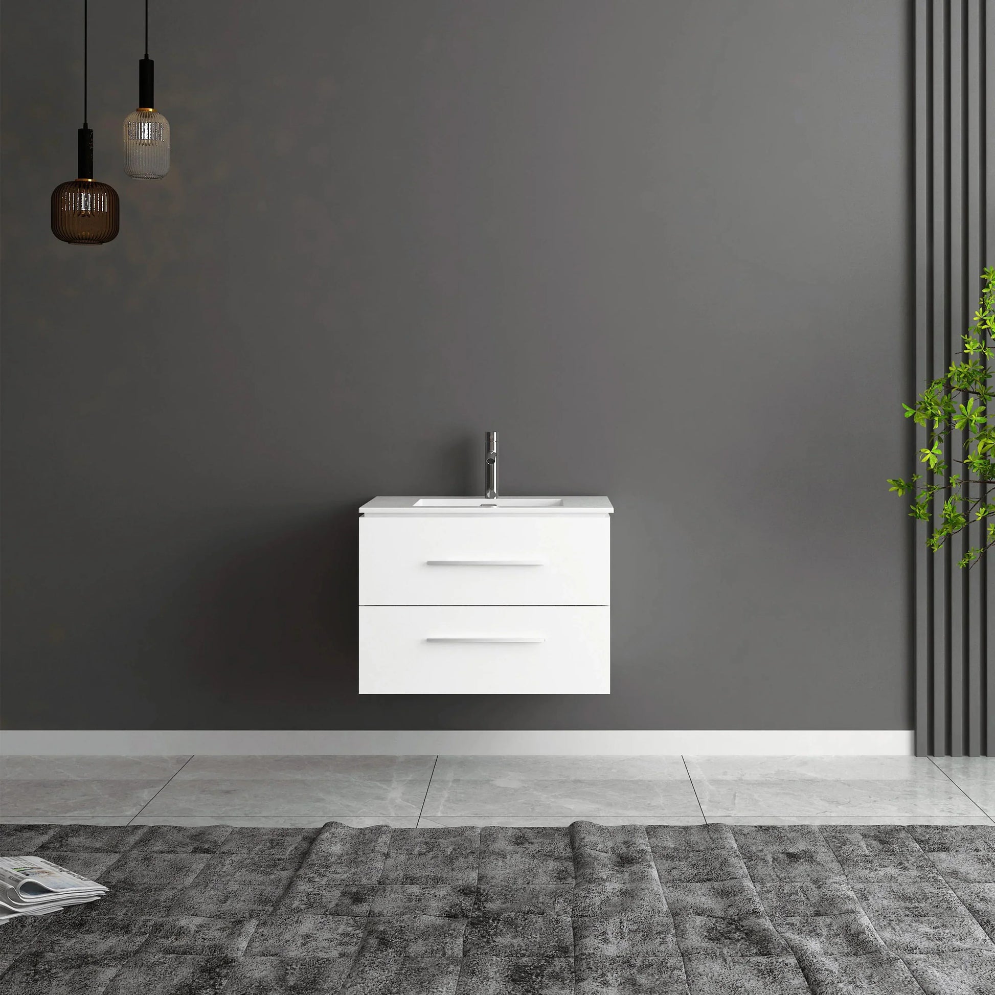 24" Matte White Wall Mount Bathroom Vanity with White Ceramic Countertop
