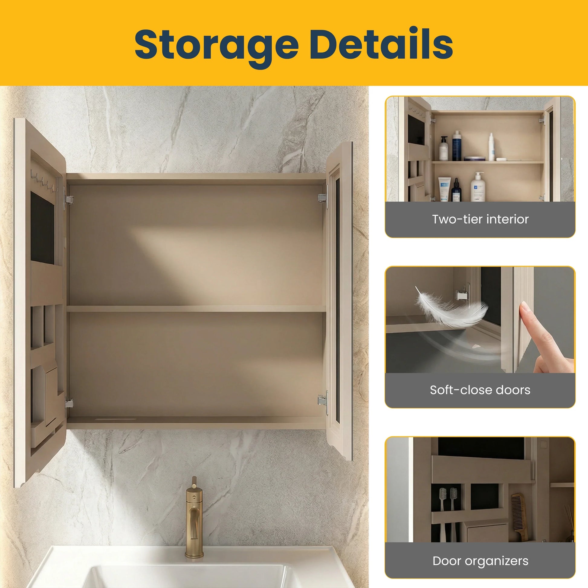 30" Brown Grey LED Medicine Cabinet with Soft-Close Doors