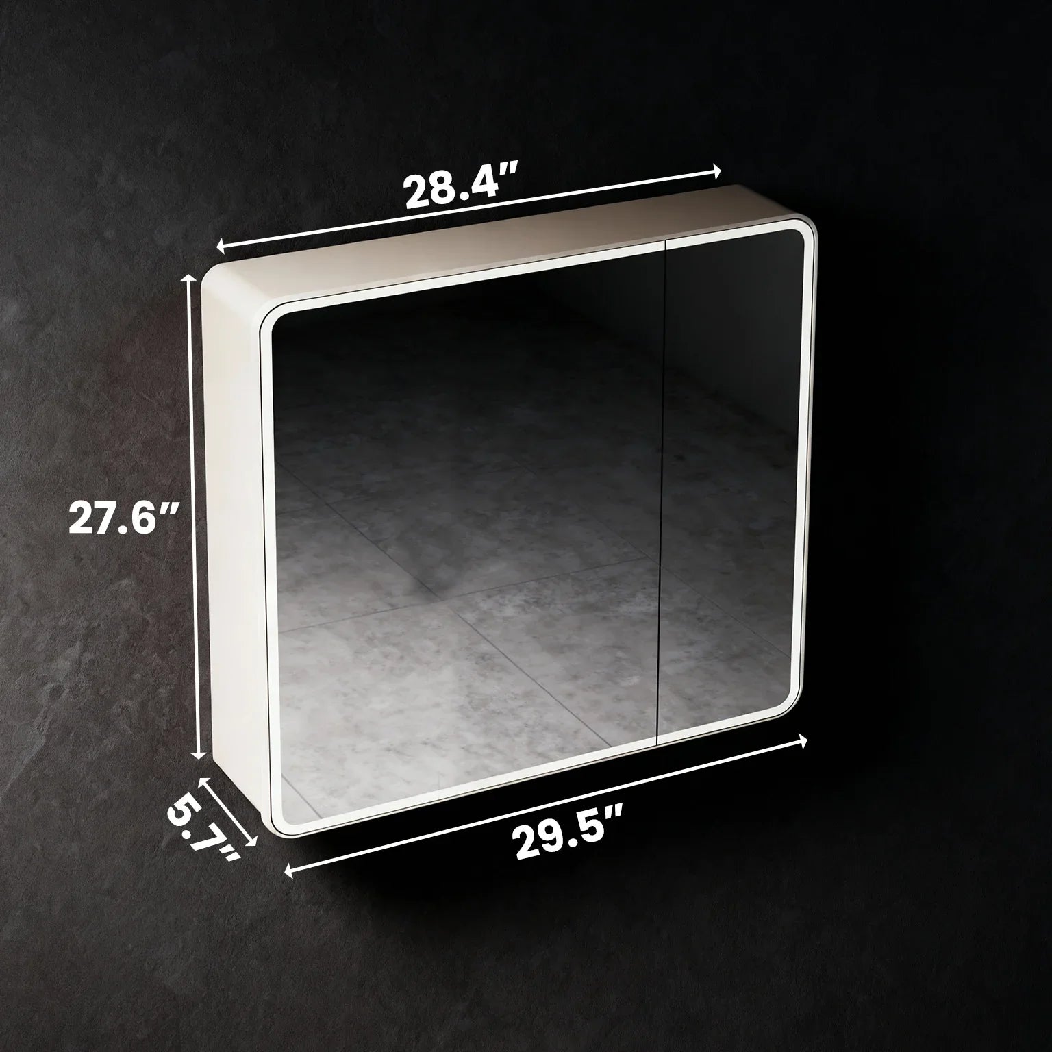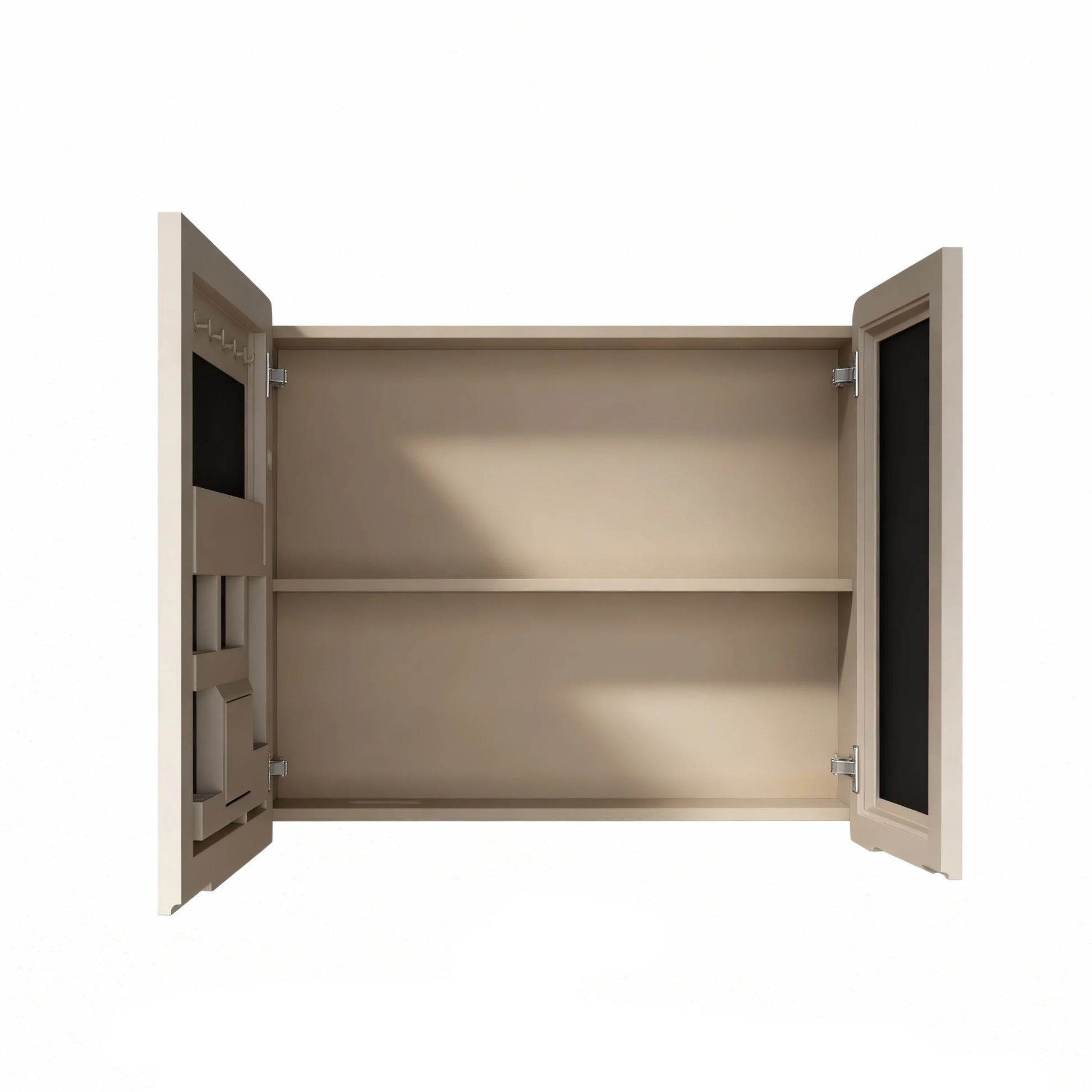 Elevate your bathroom with the Lacey Green 30" LED Medicine Cabinet in a sophisticated Brown Grey finish. This wall-mounted medicine cabinet features an elegant LED perimeter light that creates ambient illumination, perfect for grooming routines or setting a relaxing atmosphere.