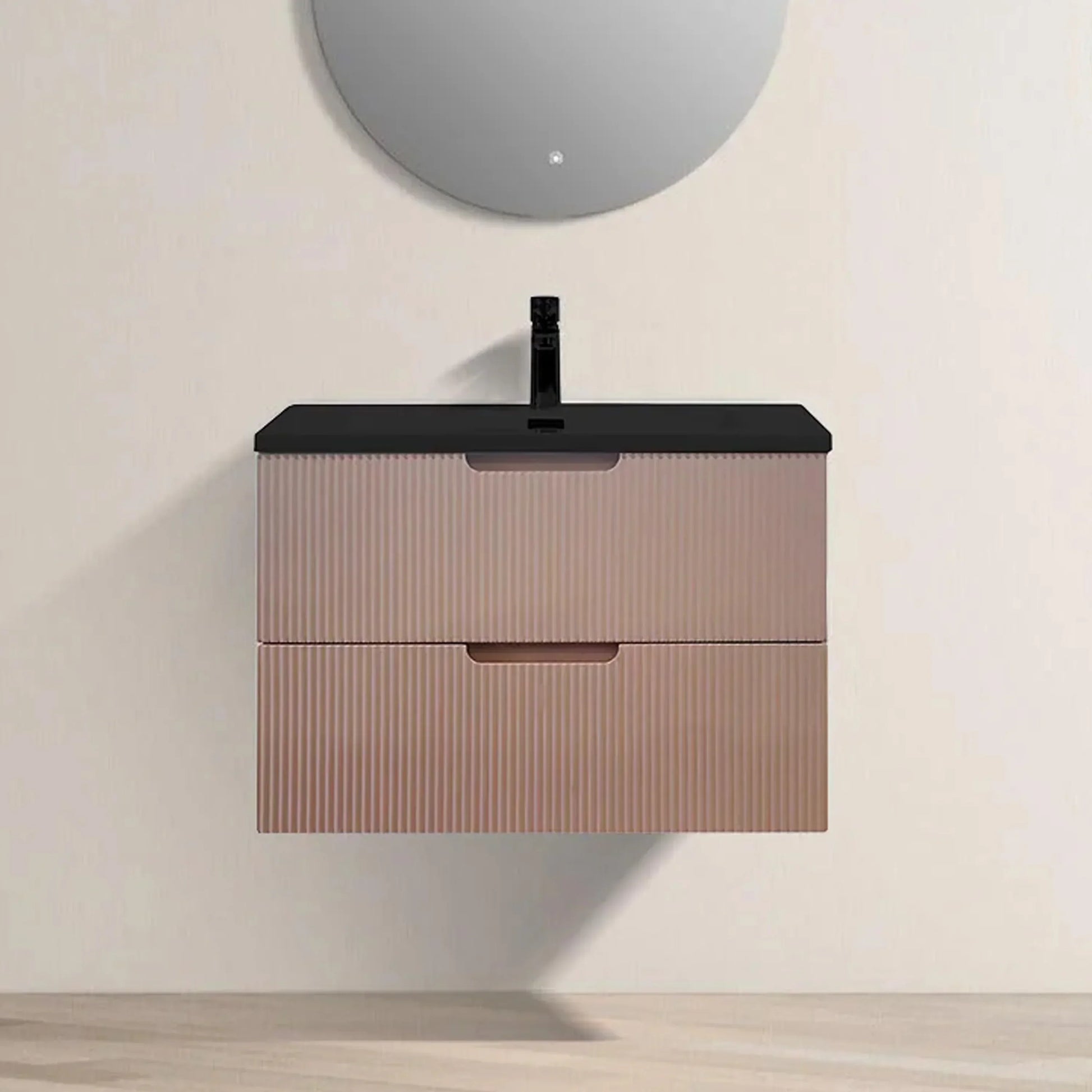30" Dusty Rose Wall Mount Bathroom Vanity with Black Engineered Quartz Countertop