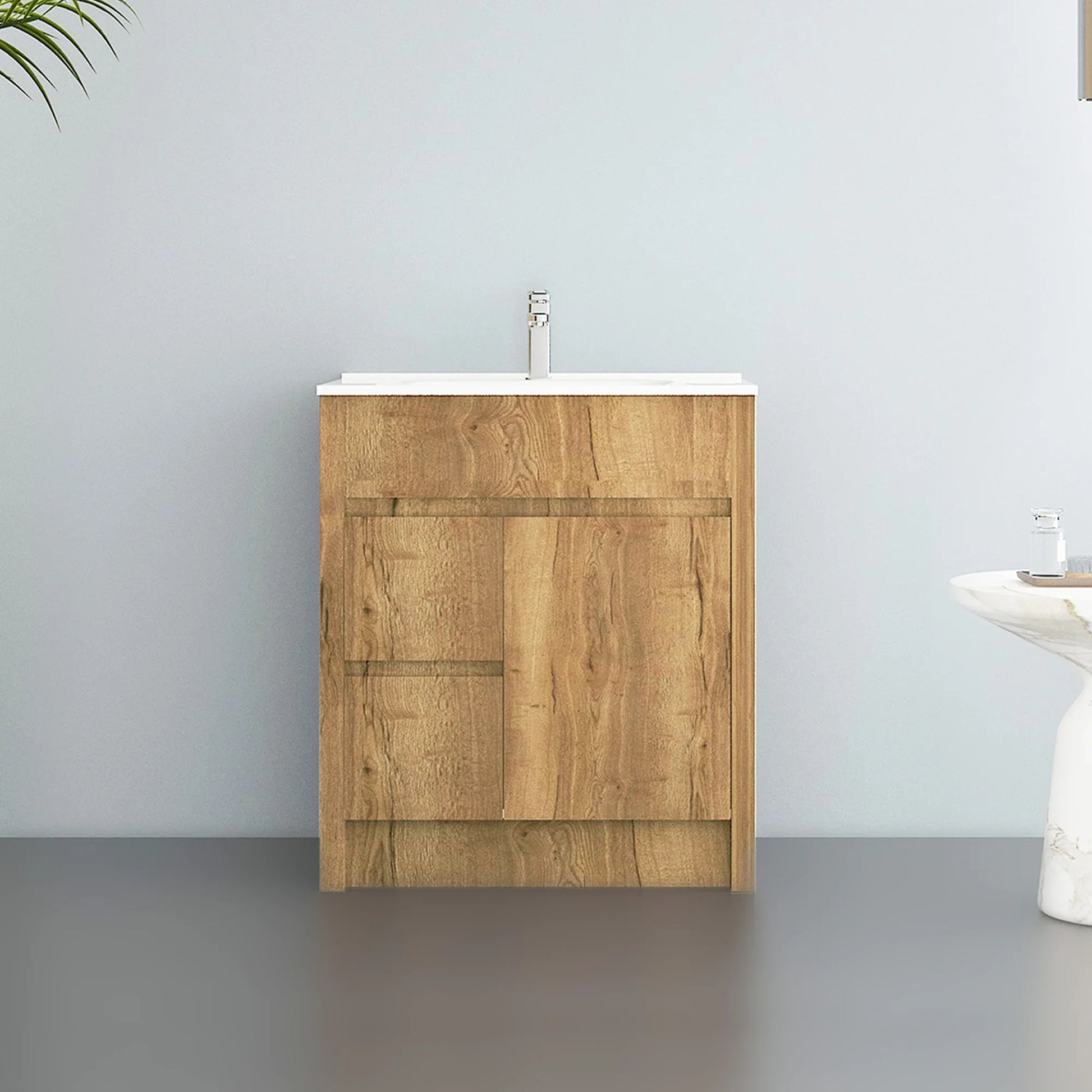 30" Frosted Oak Freestanding Bathroom Vanity with White Ceramic Countertop